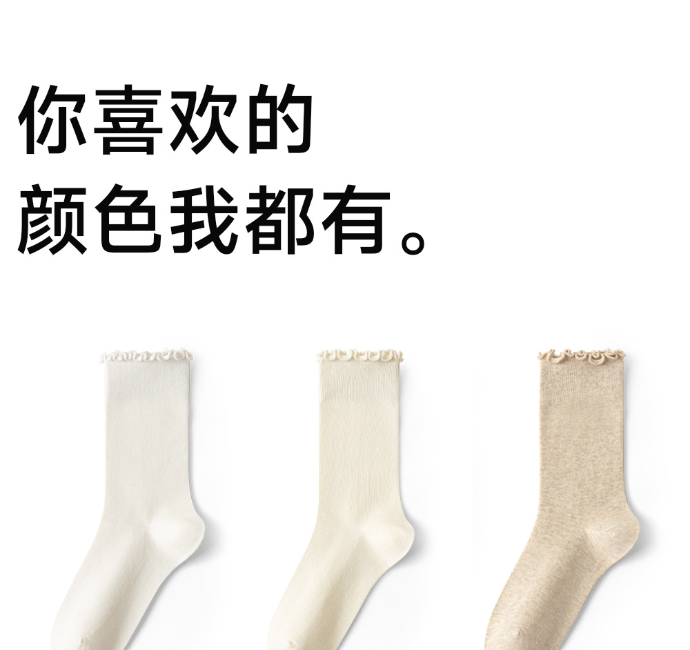 木耳边袜子女纯色棉纱中筒袜四季无骨堆堆袜卷边月子袜小皮鞋长袜