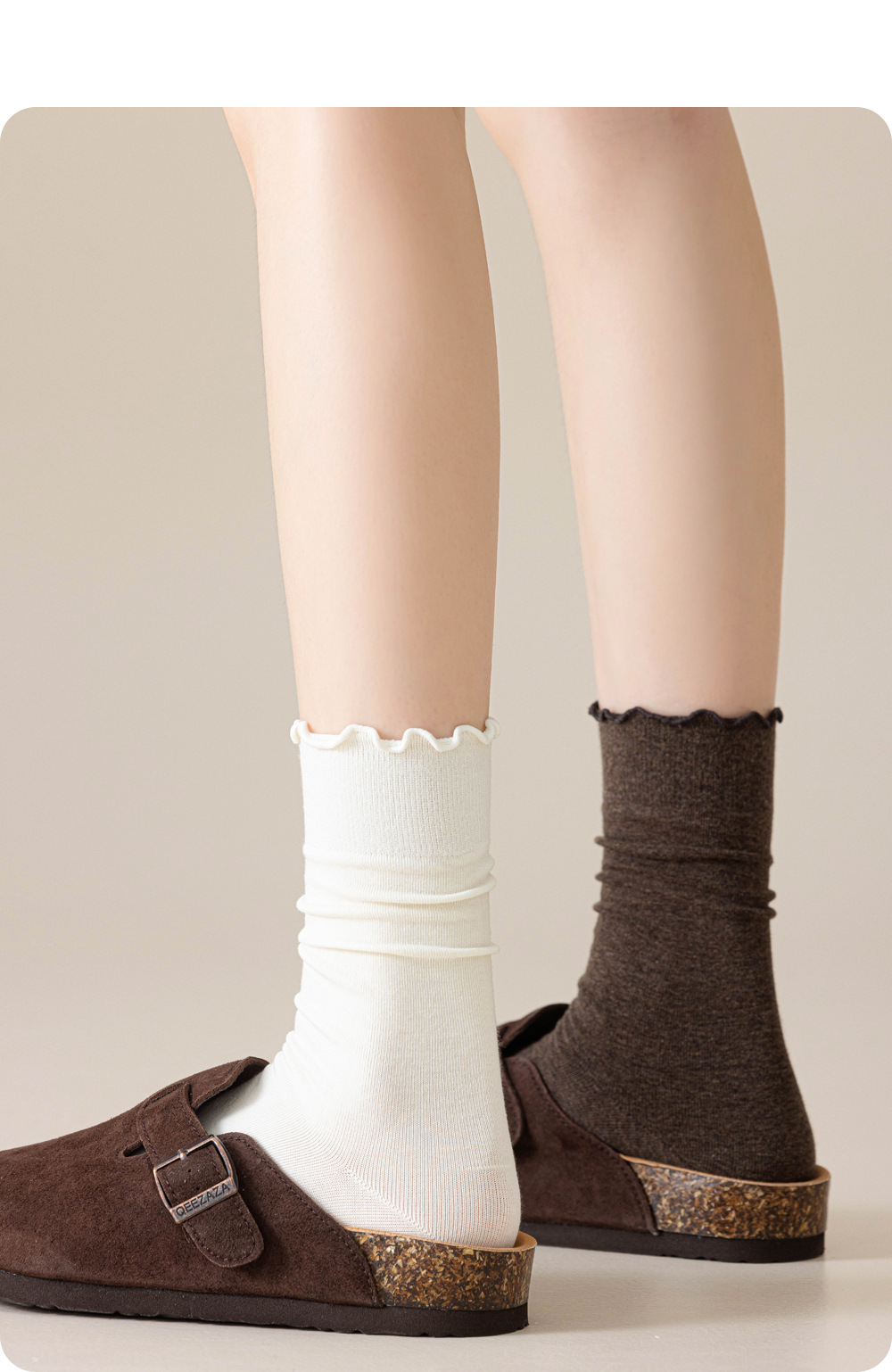 100%纯棉木耳边袜子女款秋冬季2025新款棕咖色堆堆袜配勃肯鞋长袜