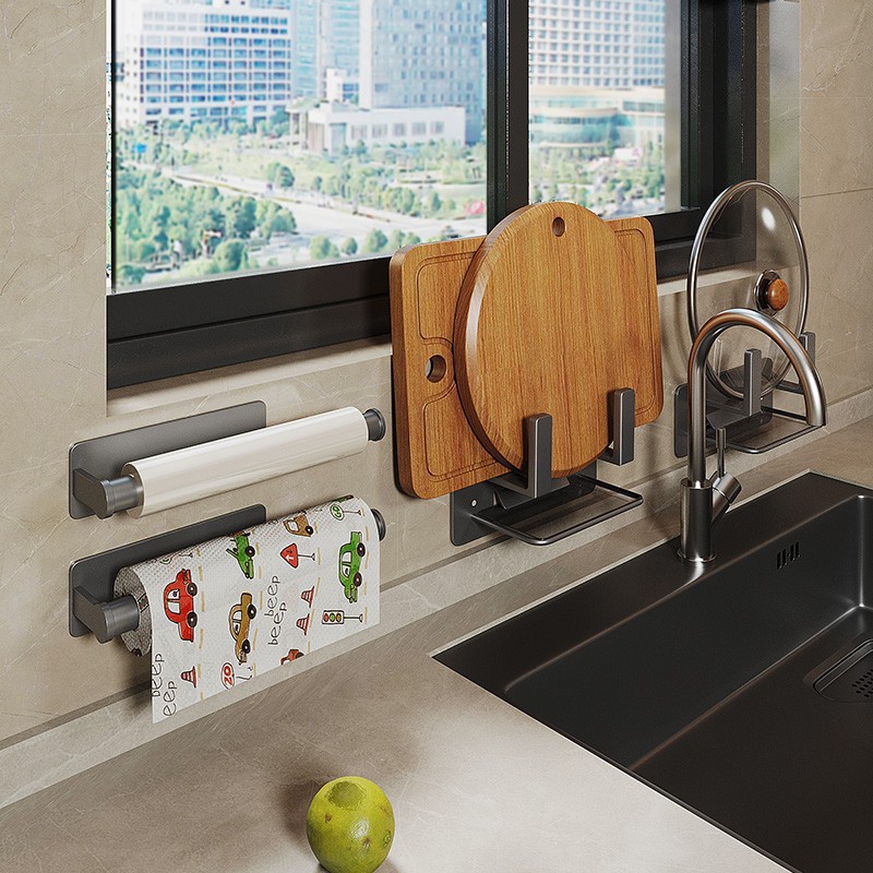 ガングレーキッチンシェルフ穴なし調味料ラック壁掛けナイフホルダー箸籠まな板なべ蓋ラック収納セット