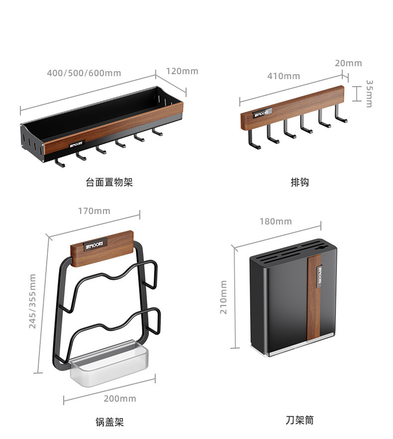 层数(规格) 黑胡桃木-加宽置物架40cm,黑胡桃木-加宽置物架50cm,黑胡桃木-加宽置物架60cm,黑胡桃木-加宽带钩置物架40cm,黑胡桃木-加宽带钩置物架50cm,黑胡桃木-加宽带钩置物架60cm,黑胡桃木-加宽带钩置物架40cm-两层装,黑胡桃木-加宽带钩置物架50cm-两层装,黑胡桃木-加宽带钩置物架60cm-两层装,黑胡桃木-三层锅盖架,黑胡桃木-两层锅盖架,黑胡桃木-砧板架,黑胡桃木-旋转挂钩-10钩,黑胡桃木-可移动排钩-6钩,黑胡桃木-厨房纸巾架