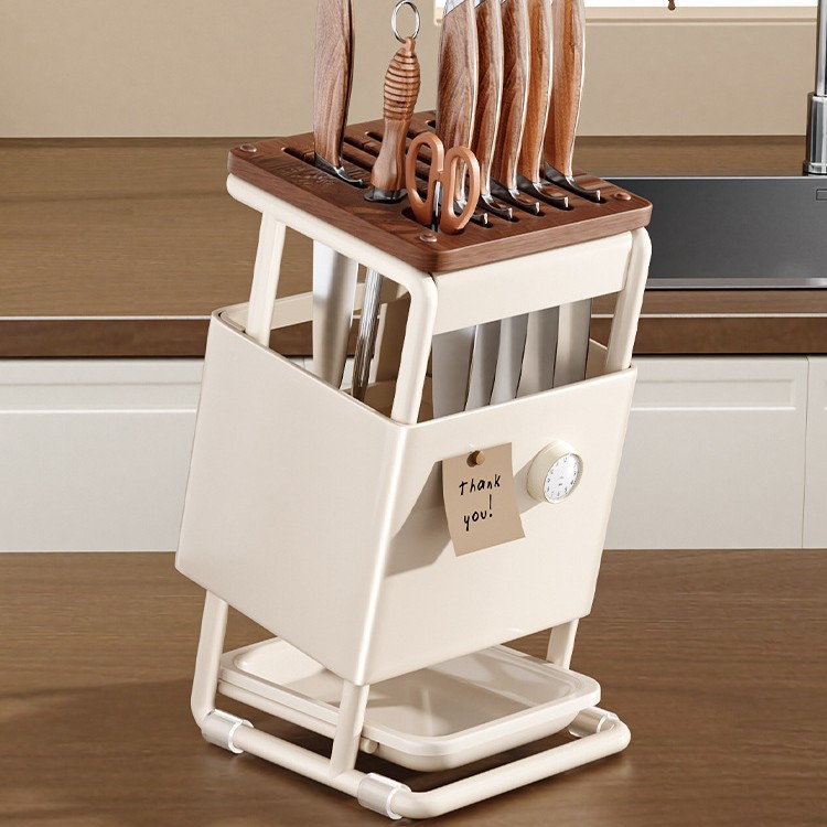 刀架置物架厨房台面款筷子筒刀架刀具菜刀一体收纳架木质刀座家用