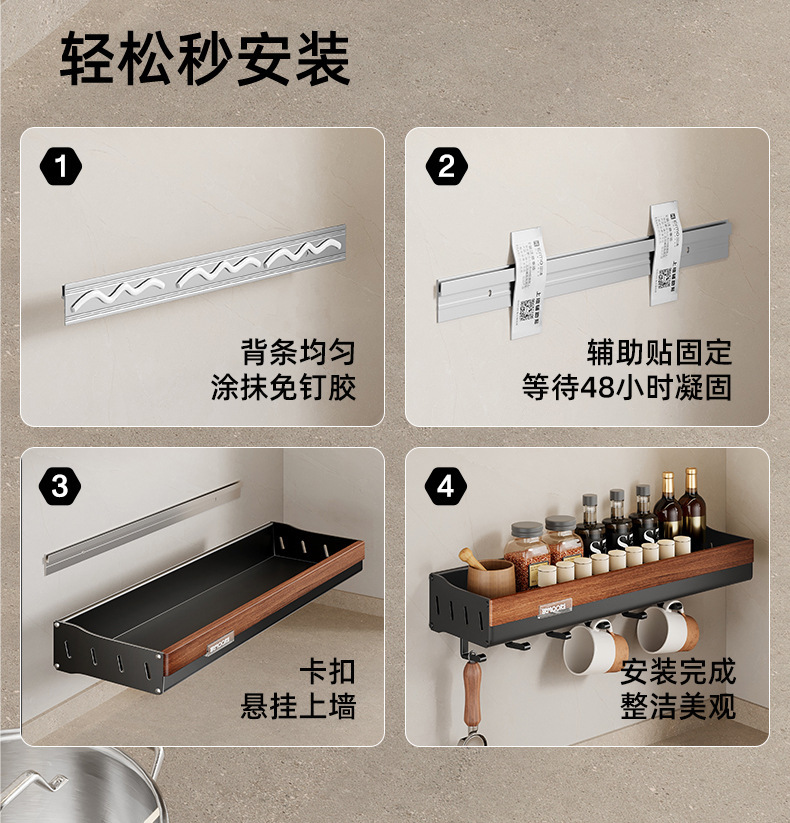 キッチン棚調味料缶収納棚壁に穴を開けない壁掛け式家庭用多機能棚