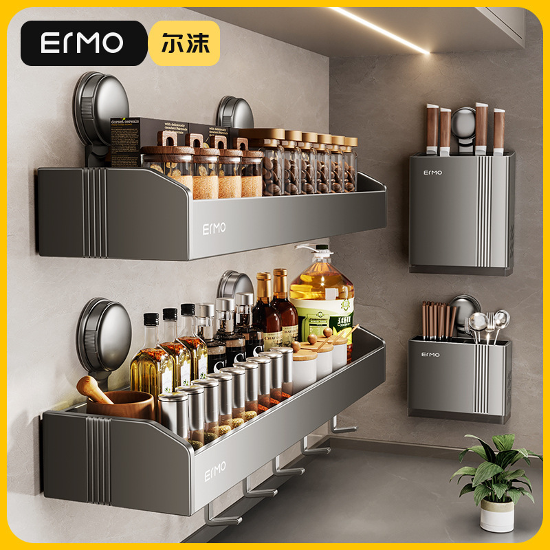 キッチン吸盤棚穴なし壁掛け式刃物棚調味料用品大全家庭用多機能収納棚