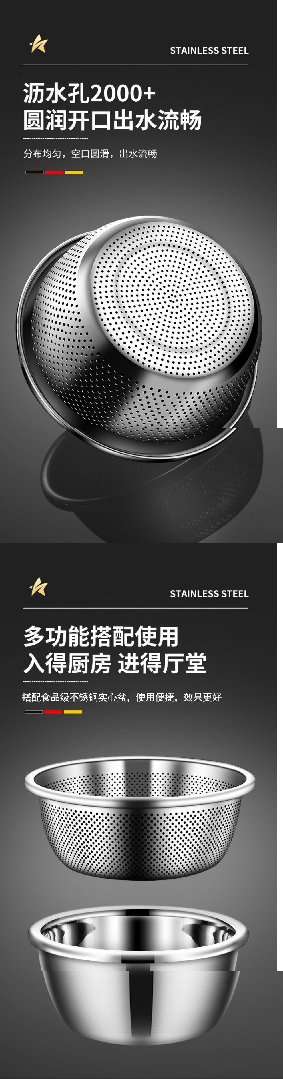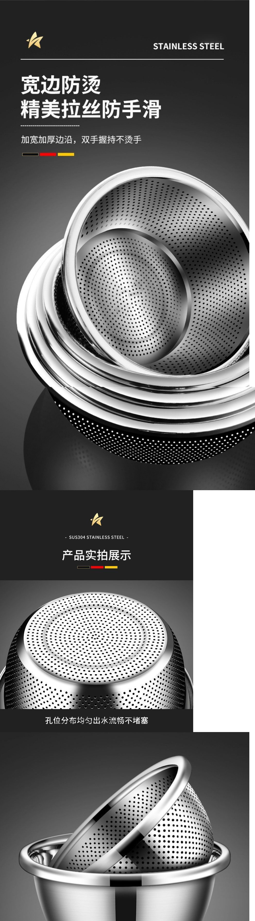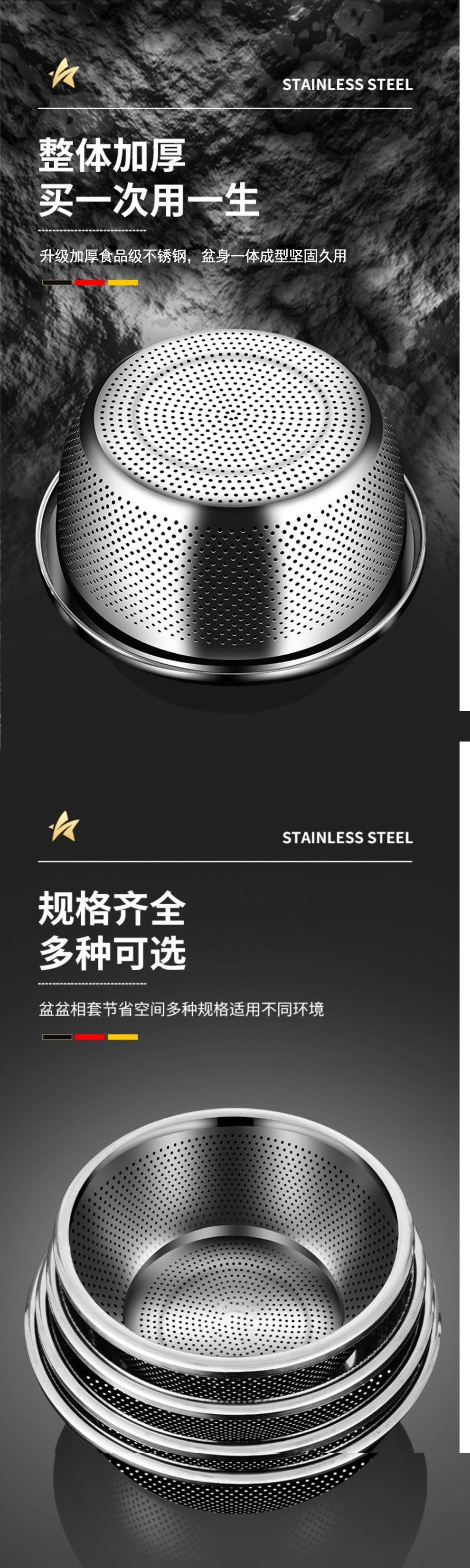 食品级不锈钢备菜盆洗菜盆和面盆沥水篮油盆面盆汤盆滤水篮打蛋盆
