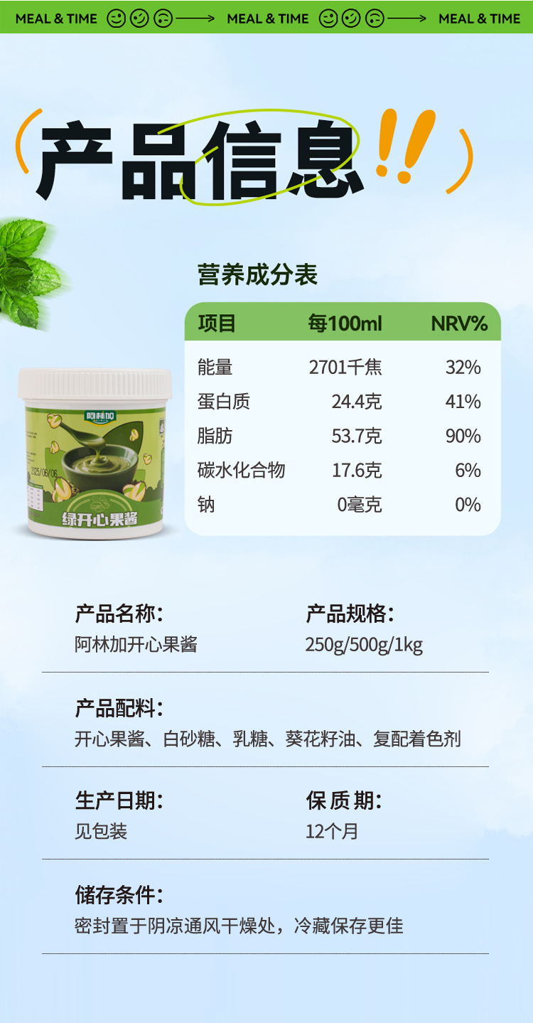 阿林加绿开心果酱500g罐装绿色坚果酱巴斯克酸奶蛋糕烘焙原料商用