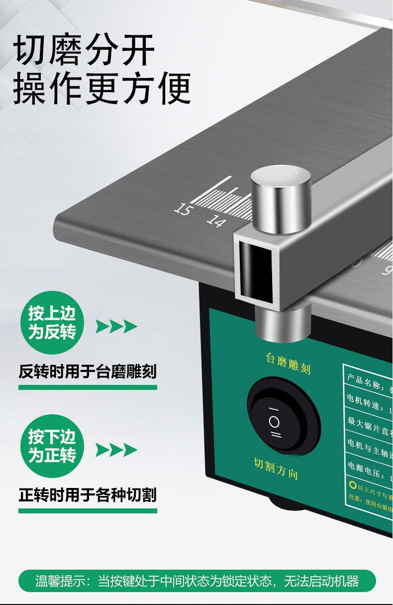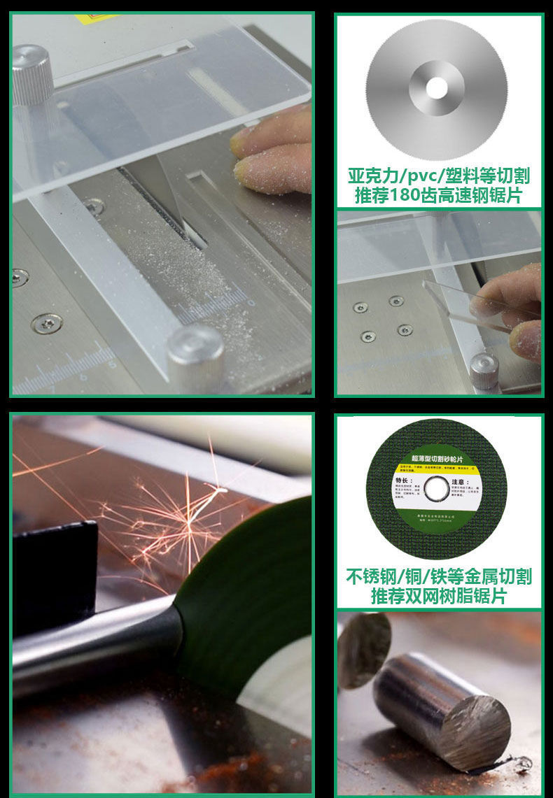 型号 标配(无需拆台面+电源+锯片),亚克力套餐(主机+电源+超薄锯片),各种材质切割(标配+各种切片),切割打磨抛光套餐,升降款标配(升降主机+电源+切片),升降款套四(主机+电源+180齿片),升降款套餐一(标配+4种切片),切割打磨抛光雕刻套餐,升降款套餐二(套一+钻夹头+配件),升降款套餐三(套餐二+软轴+配件)