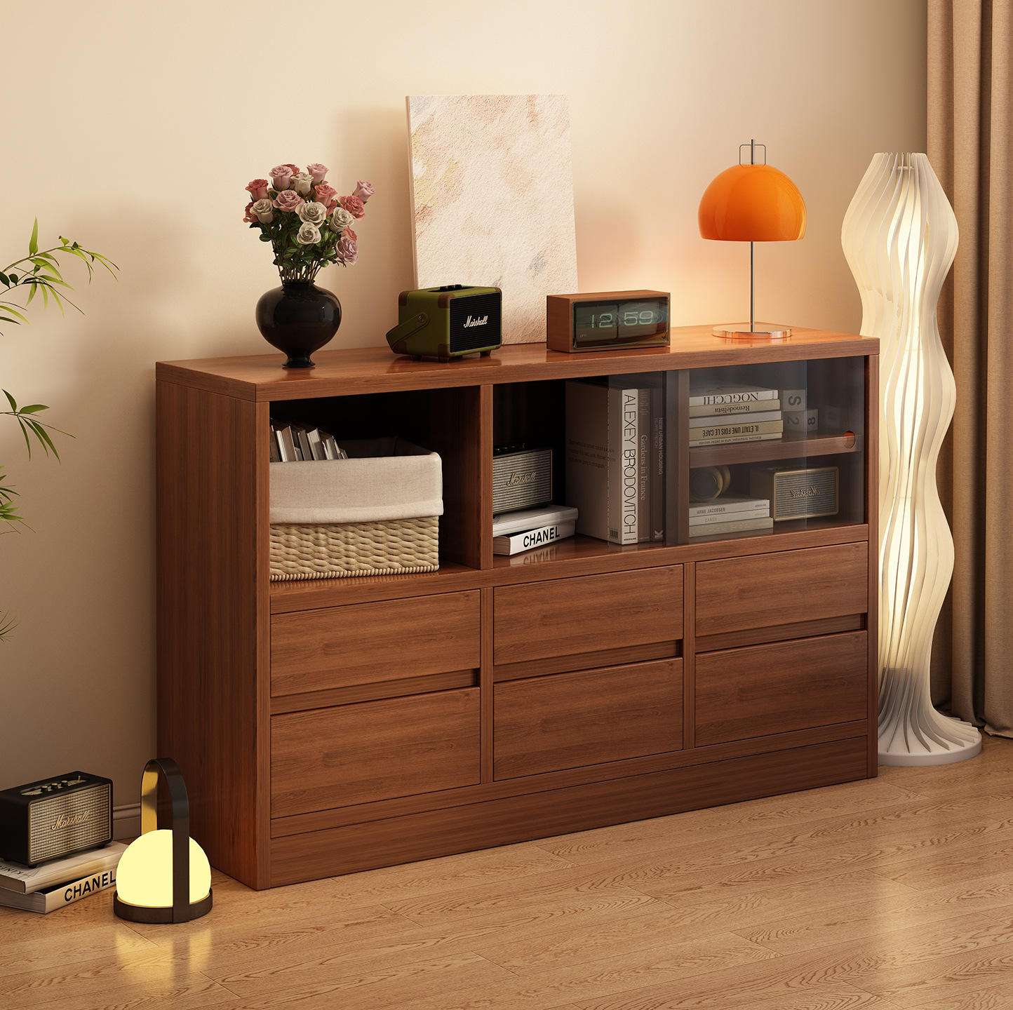 书柜储物柜矮柜落地实木靠墙客厅复古置物架展示书架抽屉式收纳柜