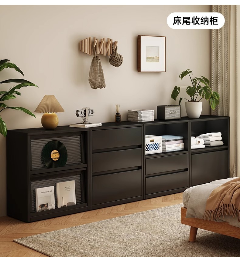 意式高级黑色实木五斗柜卧室储物抽屉墙床尾置物柜简约现代八斗柜