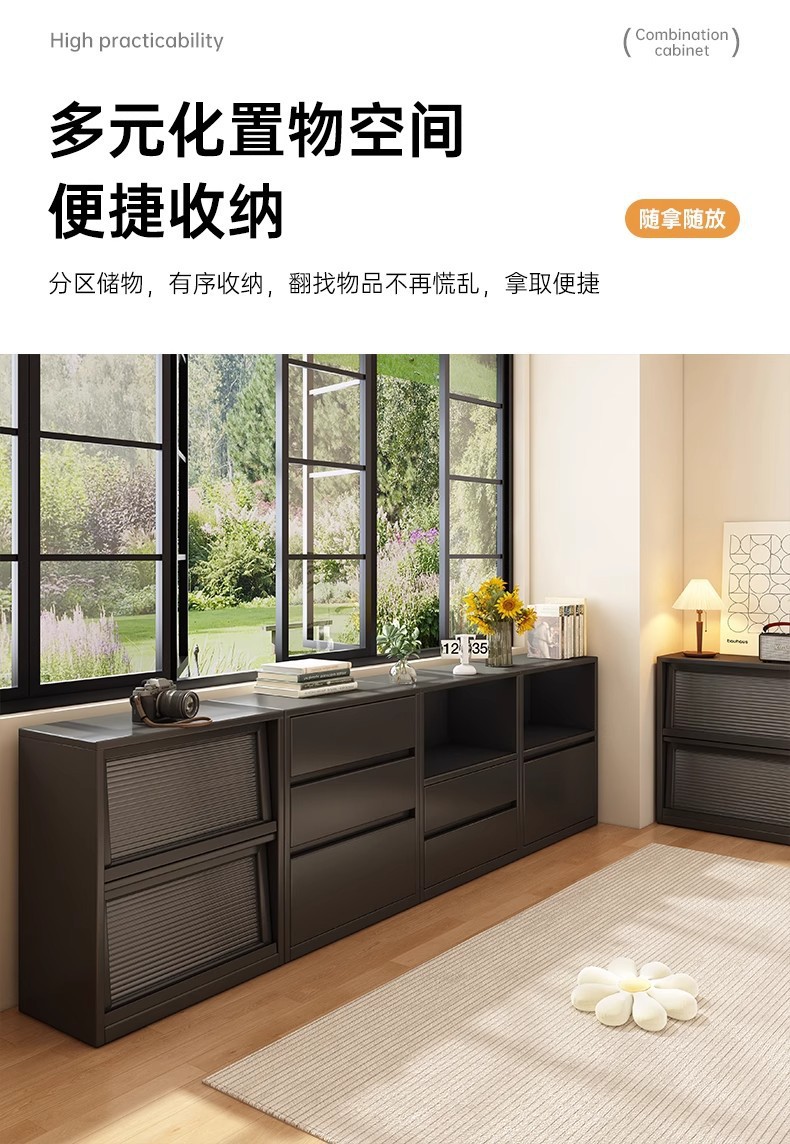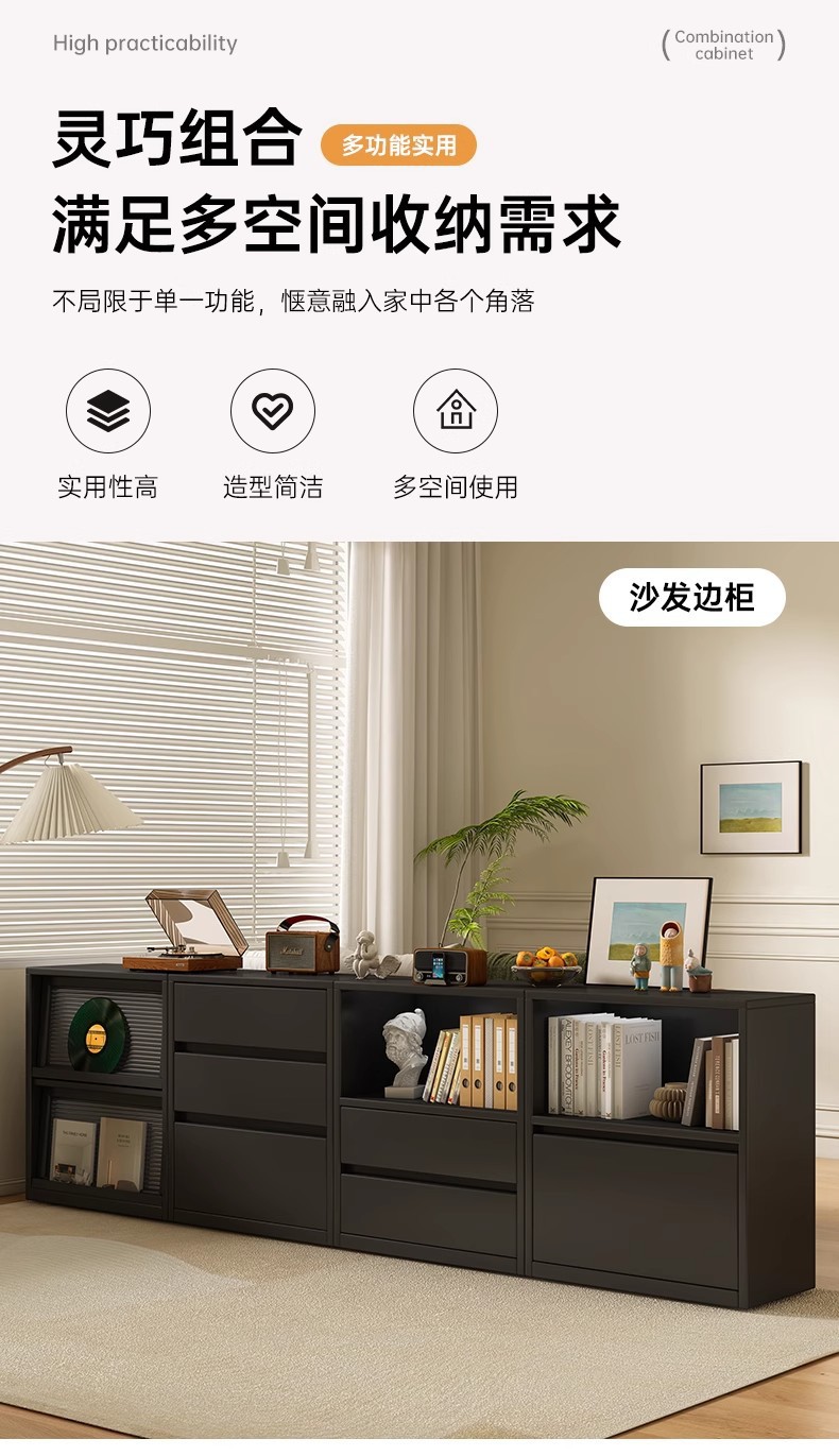 书柜收纳柜储物柜落地靠墙客厅大容量多层组合柜边柜中古风置物柜
