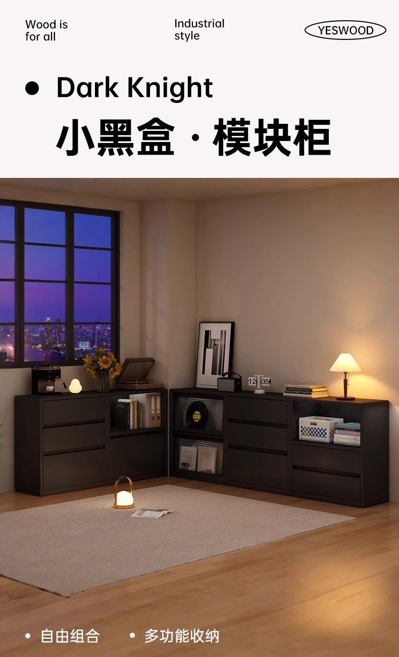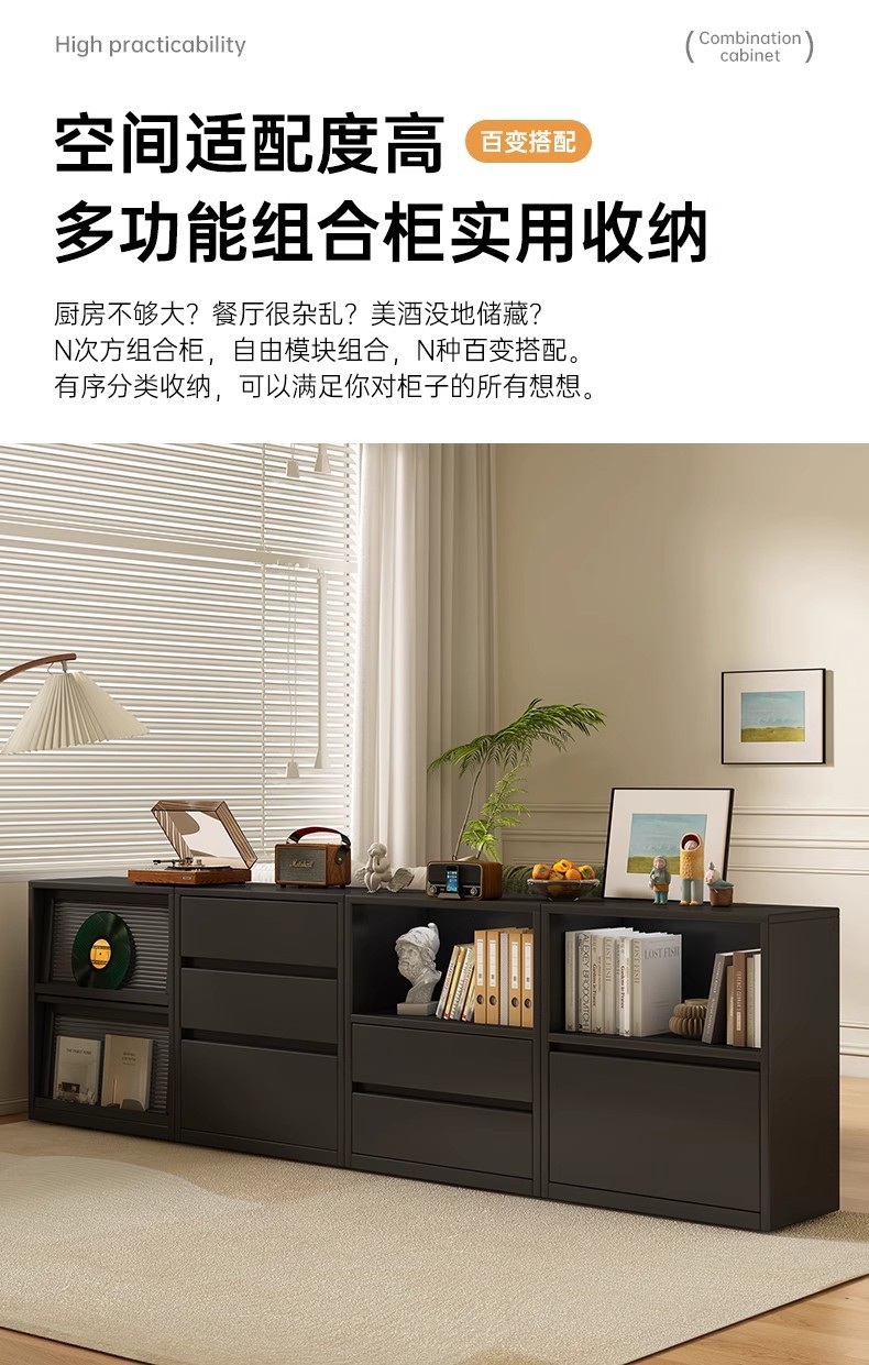 实木书柜模块组合柜客厅收纳柜半墙落地置物柜电视柜储物矮柜书架
