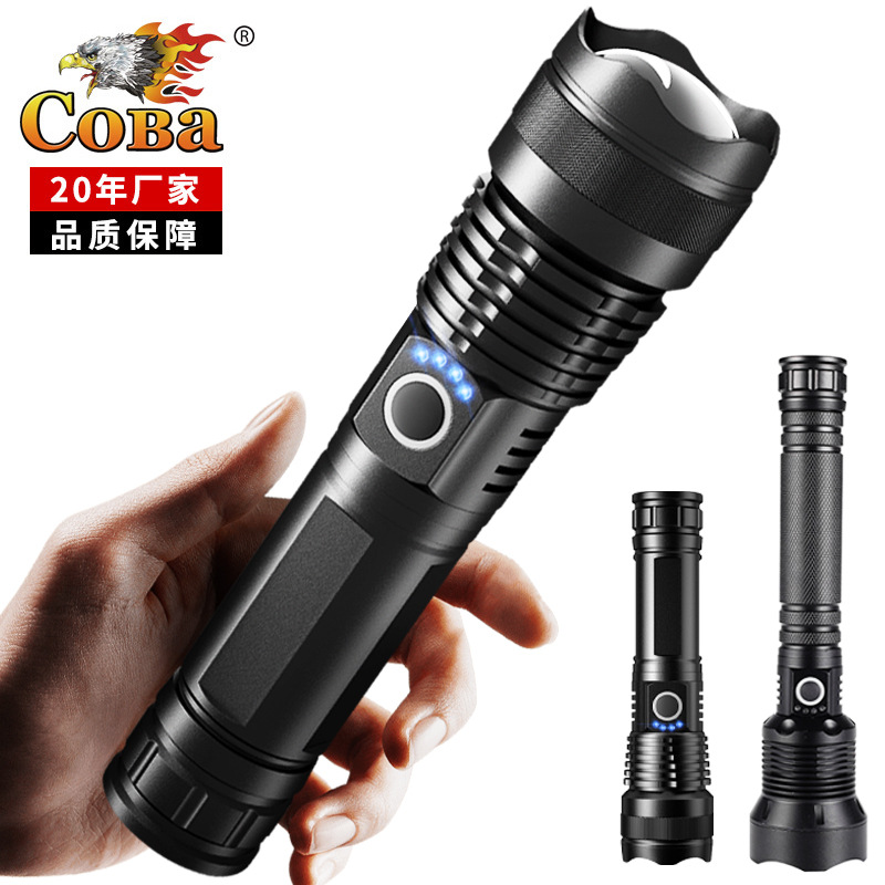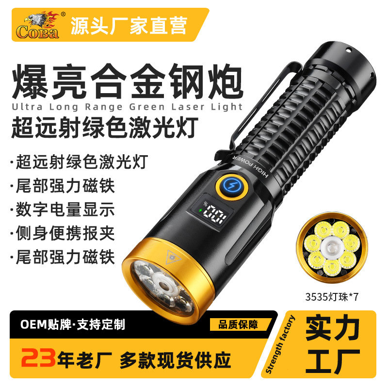 アマゾン強光ズーム多機能懐中電灯type-c充電蛍光条デジタル電気白レーザー懐中電灯