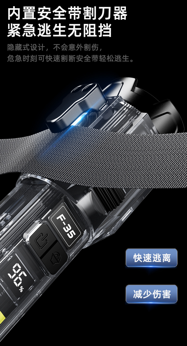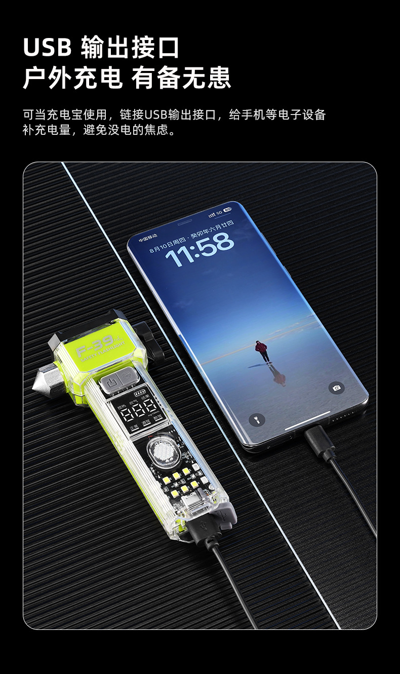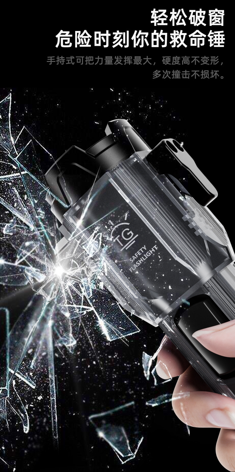 汽车安全锤手电筒户外强光长续航红光警示灯多功能破窗割刀工作灯