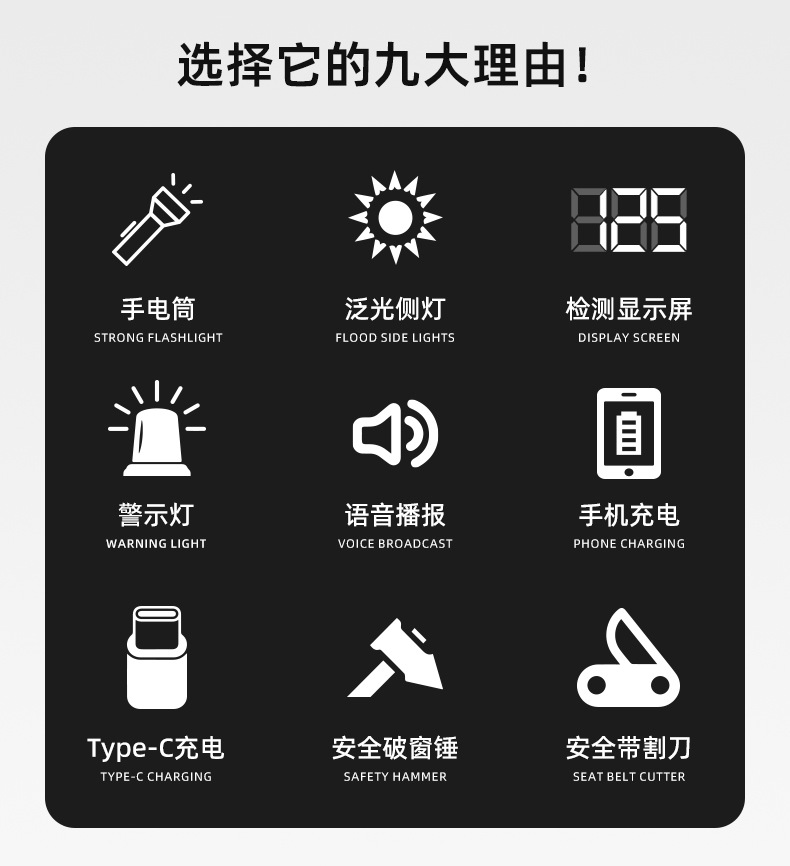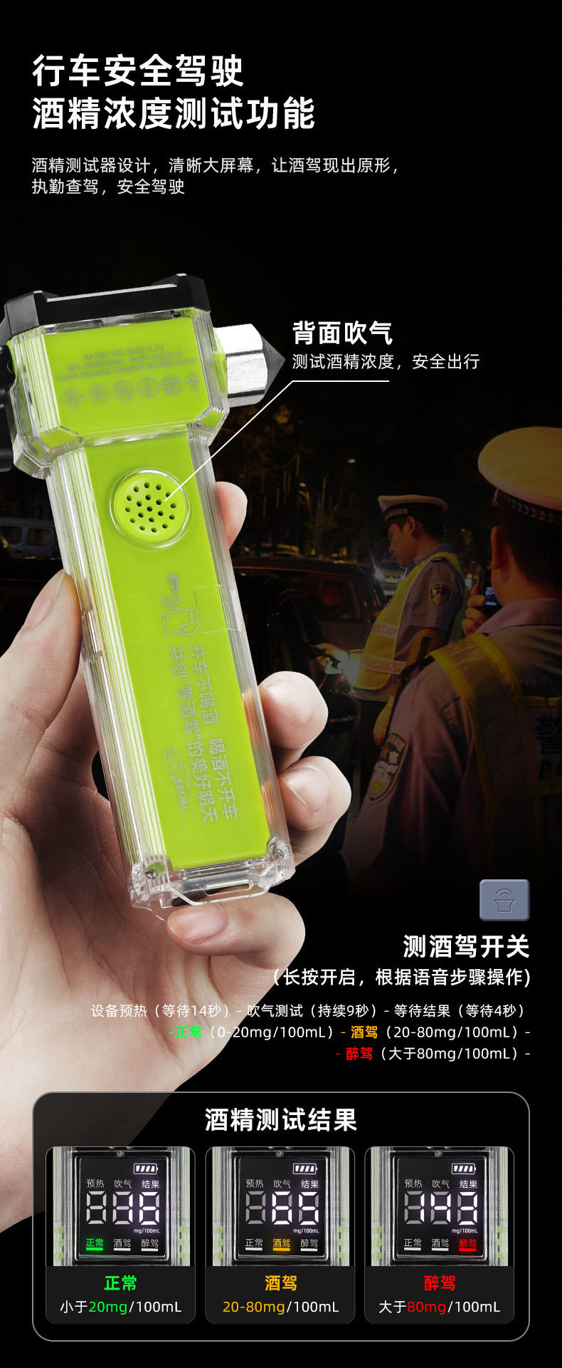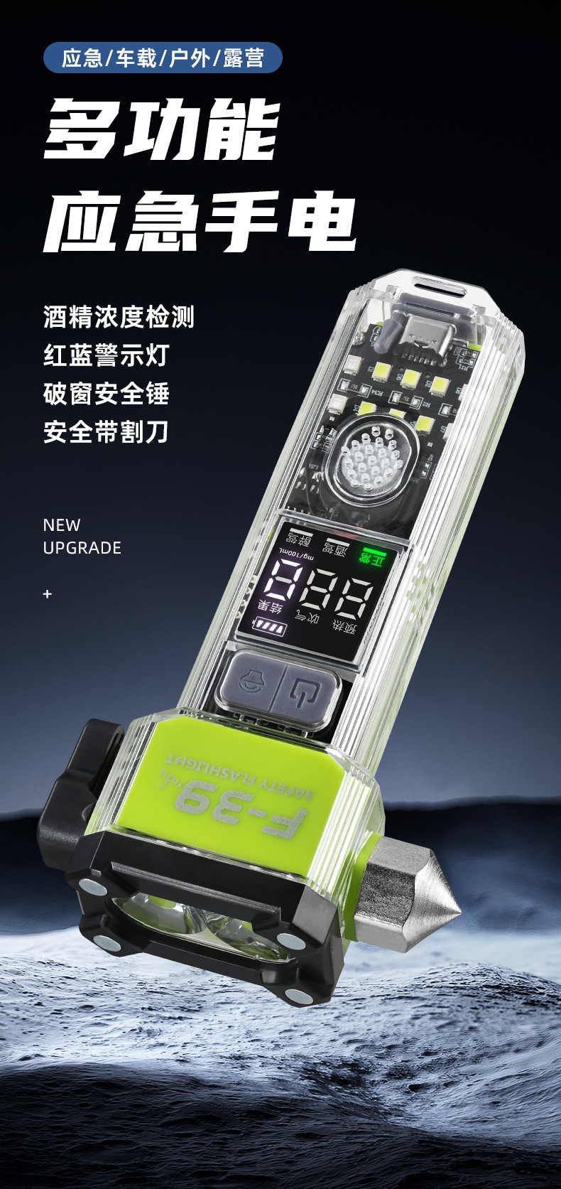 汽车安全锤手电筒户外强光长续航红光警示灯多功能破窗割刀工作灯
