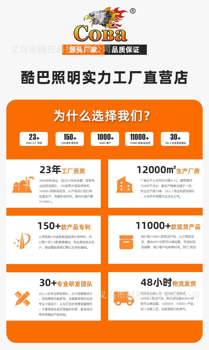 led手电筒户外强光超亮长续航多功能便携应急警示灯家用cob工作灯