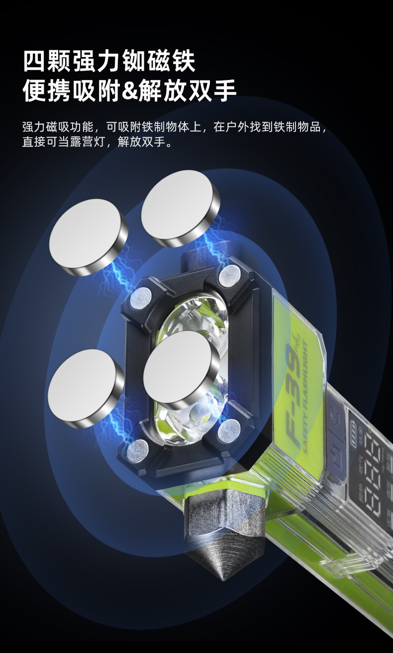 クロスボーダー車載安全破窓ハンマー緊急懐中電灯新型ローラーズーム懐中電灯強光帯磁石多機能