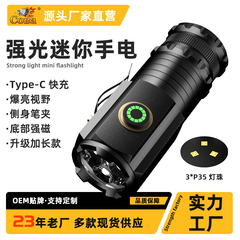 ディザトーンアマゾン小型多機能type-c充電キャップランプ3個p35強光電球磁石懐中電灯