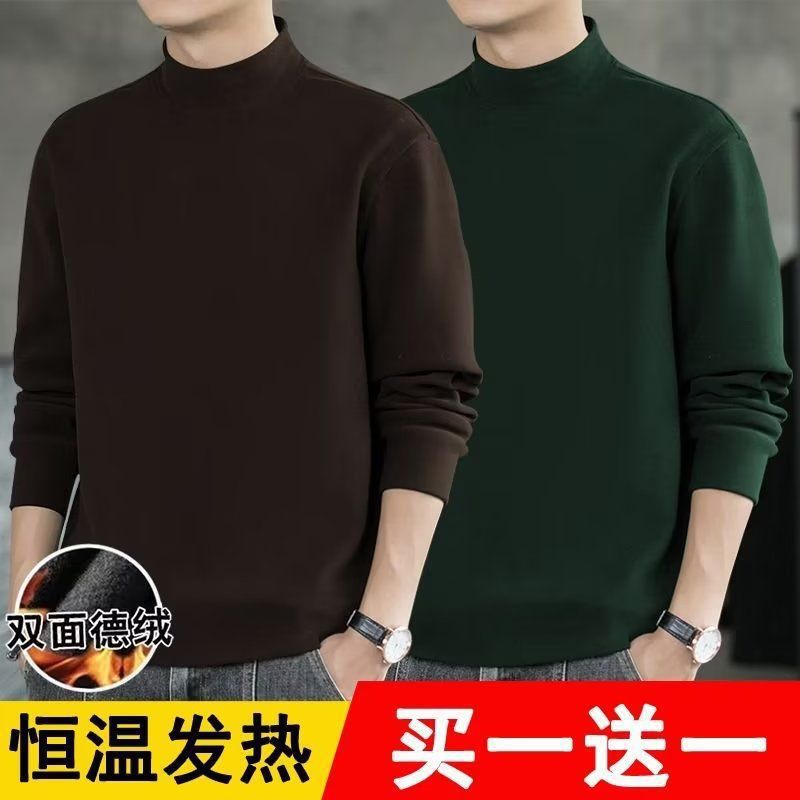 男士双面德绒打底衫内搭潮流百搭半高领秋冬季保暖长袖t恤上衣