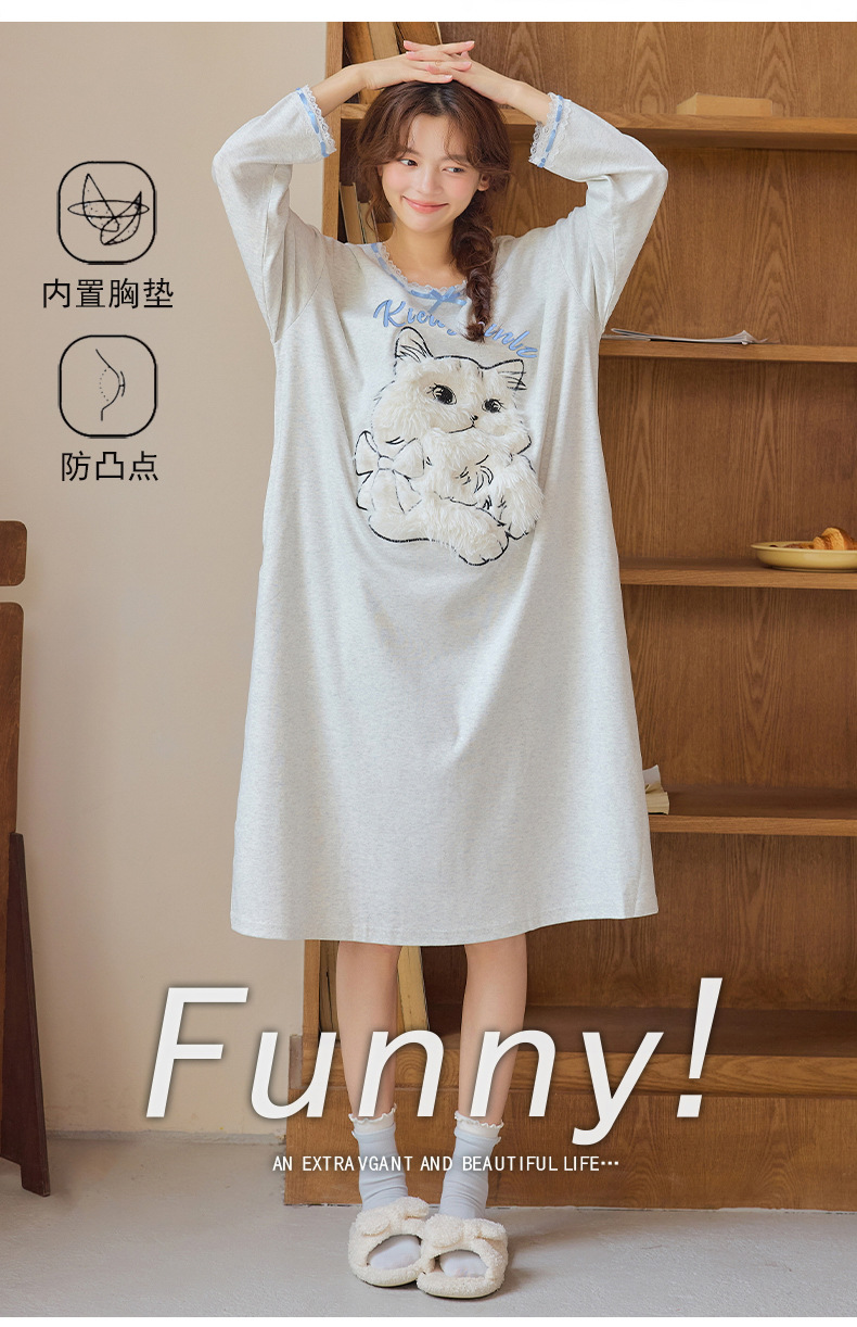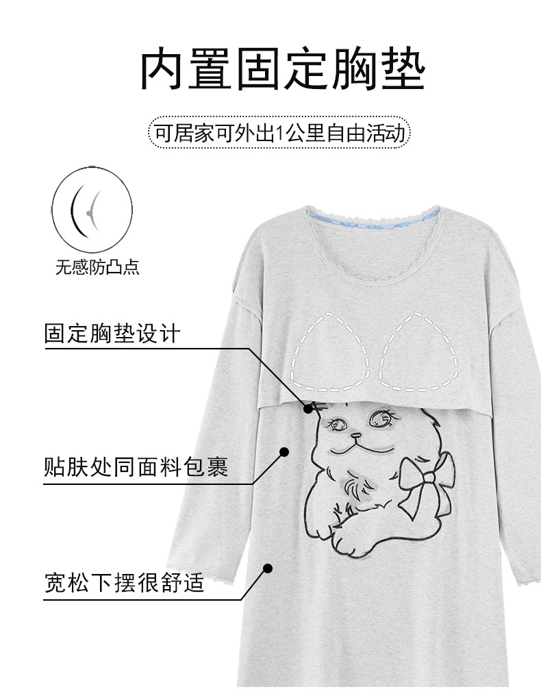 带胸垫95棉拉架爽棉长袖睡裙女甜美卡通宽松韩版少女时尚连衣裙秋