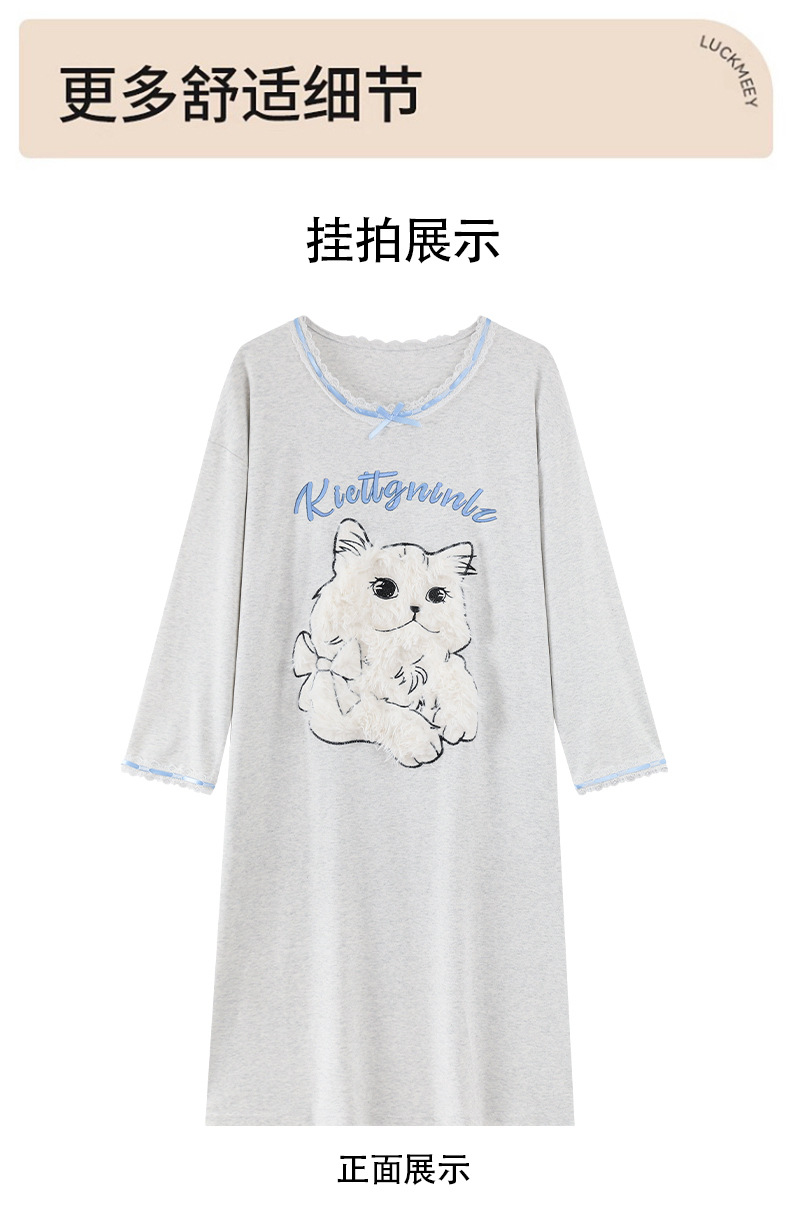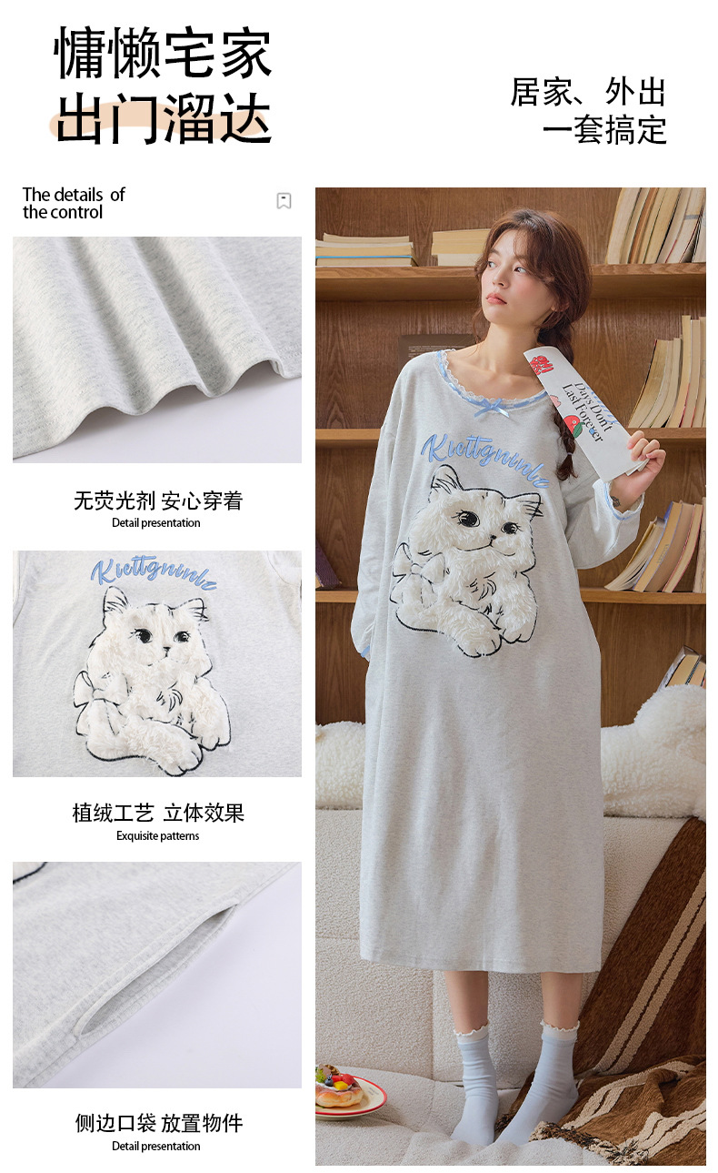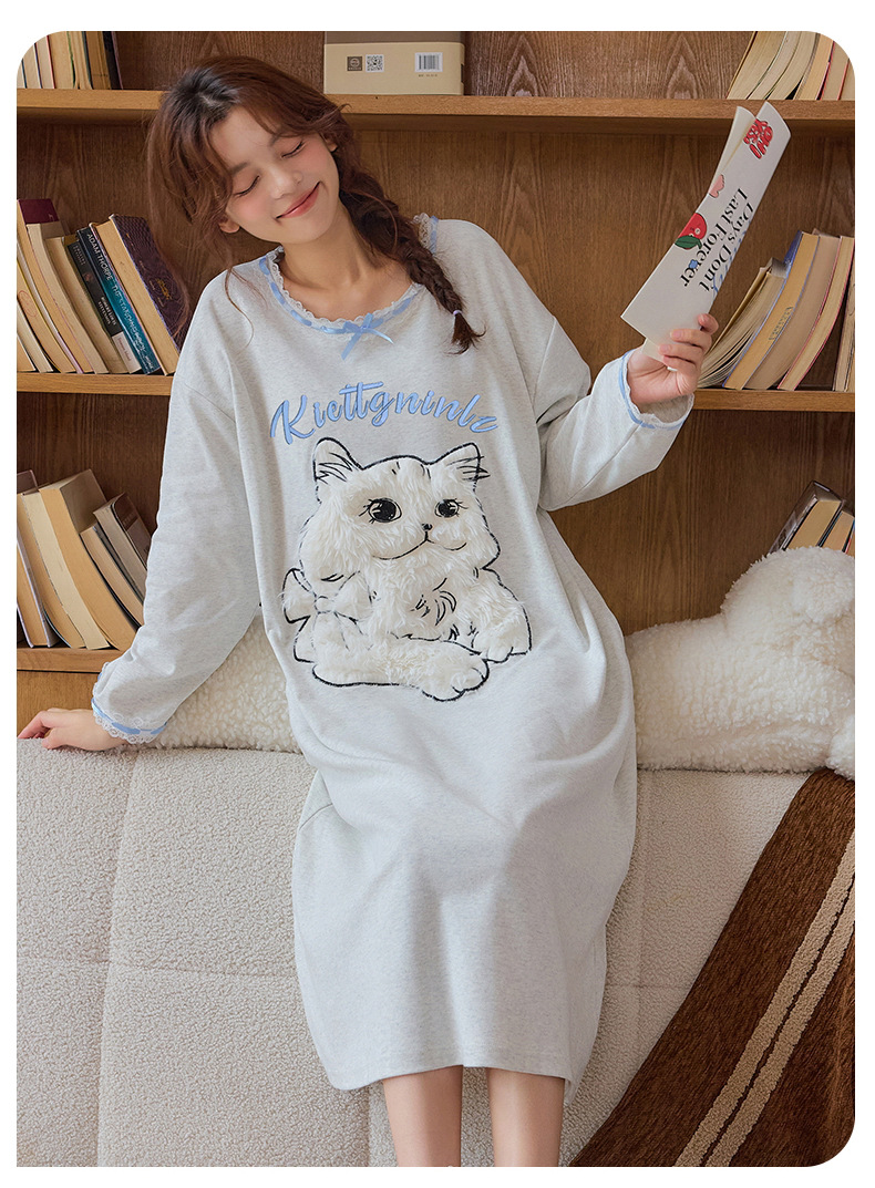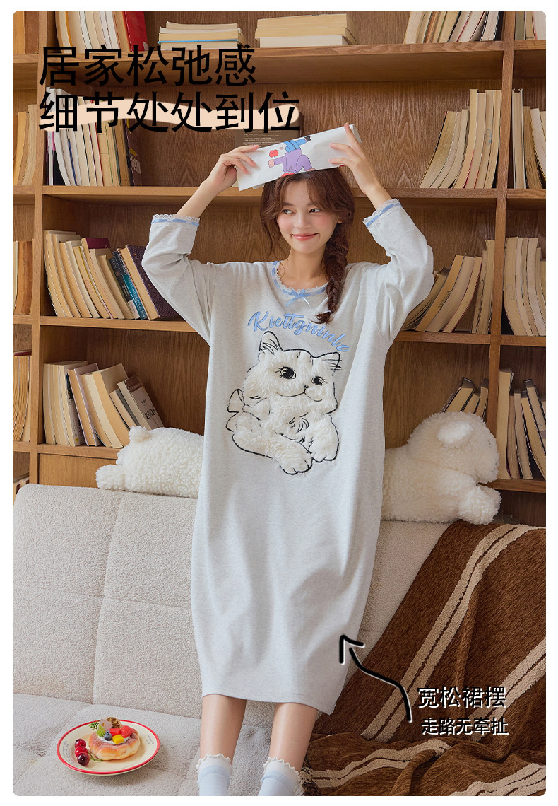 A类抗菌 爽棉长袖睡裙女甜美卡通少女新款时尚纯棉加大码连衣裙秋