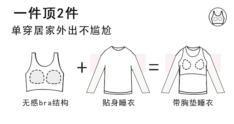 抗菌綿綿綿綿パジャマ女性は胸パッド付き長袖春秋シーズンはブラジャーを着用しないでください。