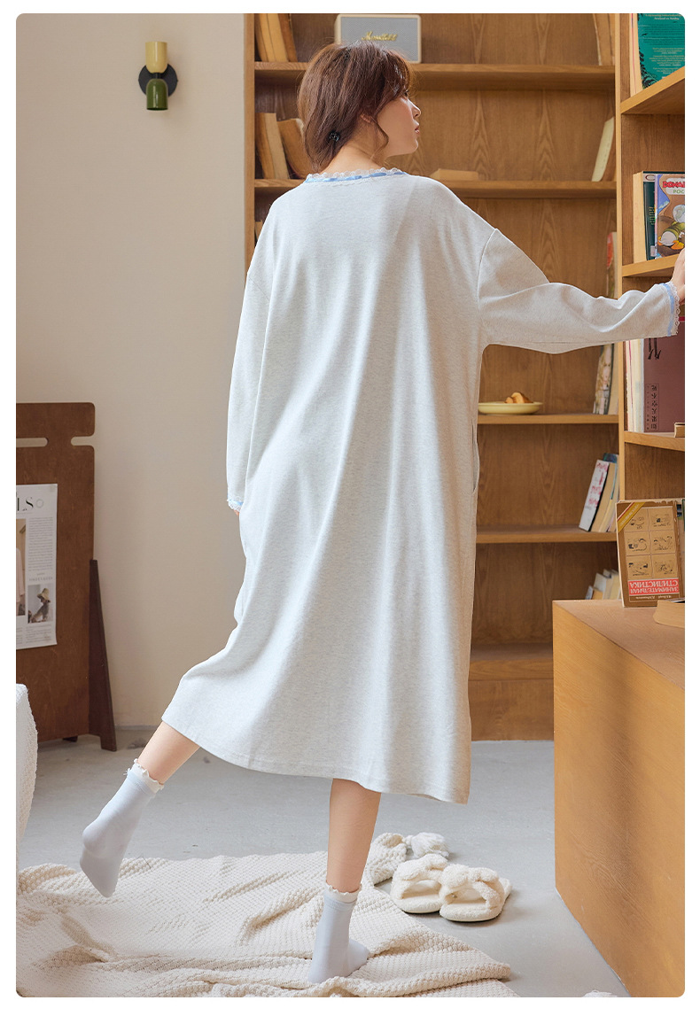 抗菌夏純綿パジャマ女性長袖ゆるい大サイズルームウェア薄い通気性カジュアルパジャマワンピース秋