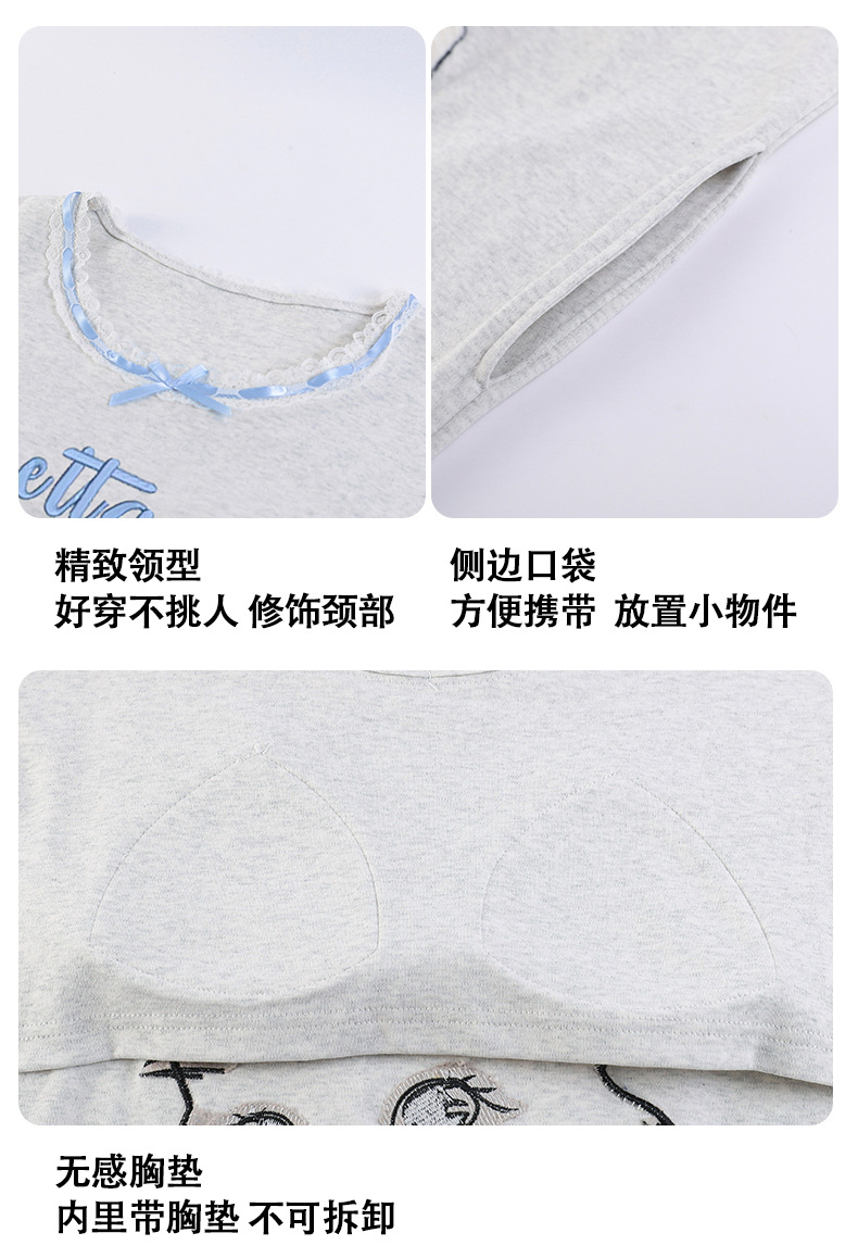 A类抗菌 带胸垫爽棉开衫翻领卡通睡衣女新款时尚纯棉家居服可外穿