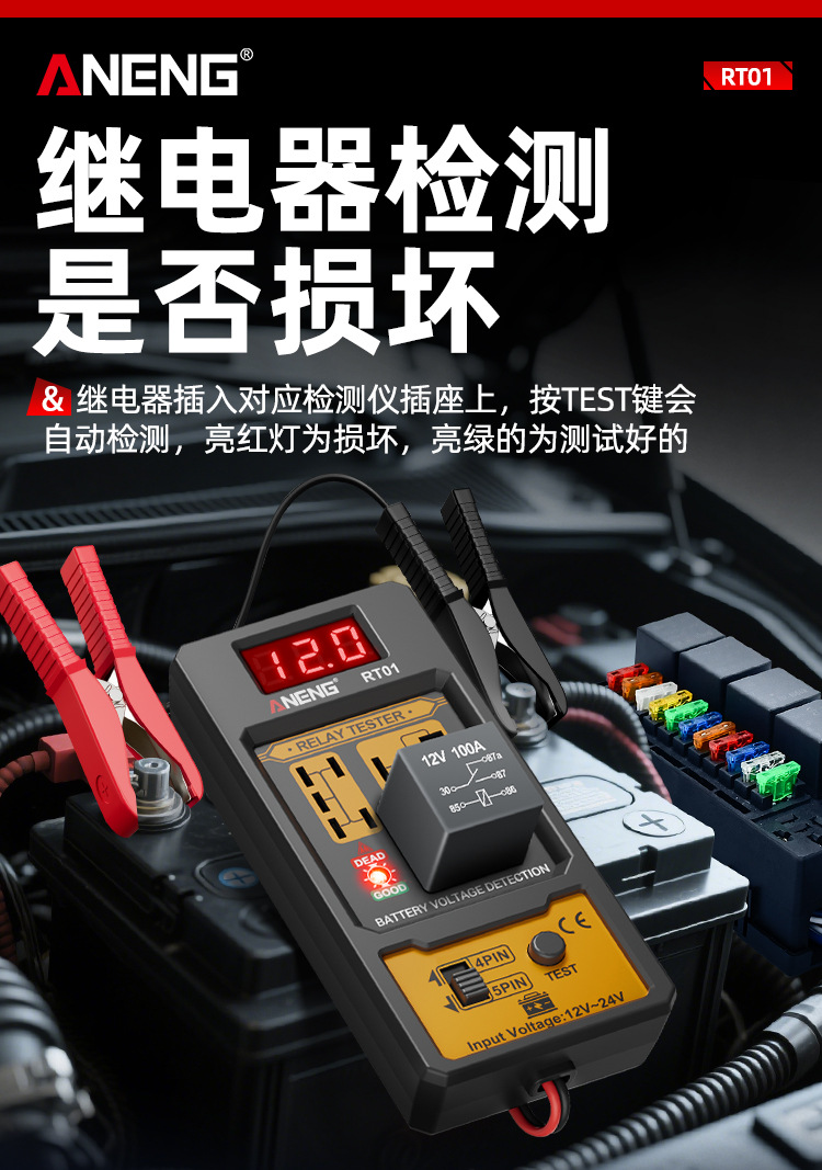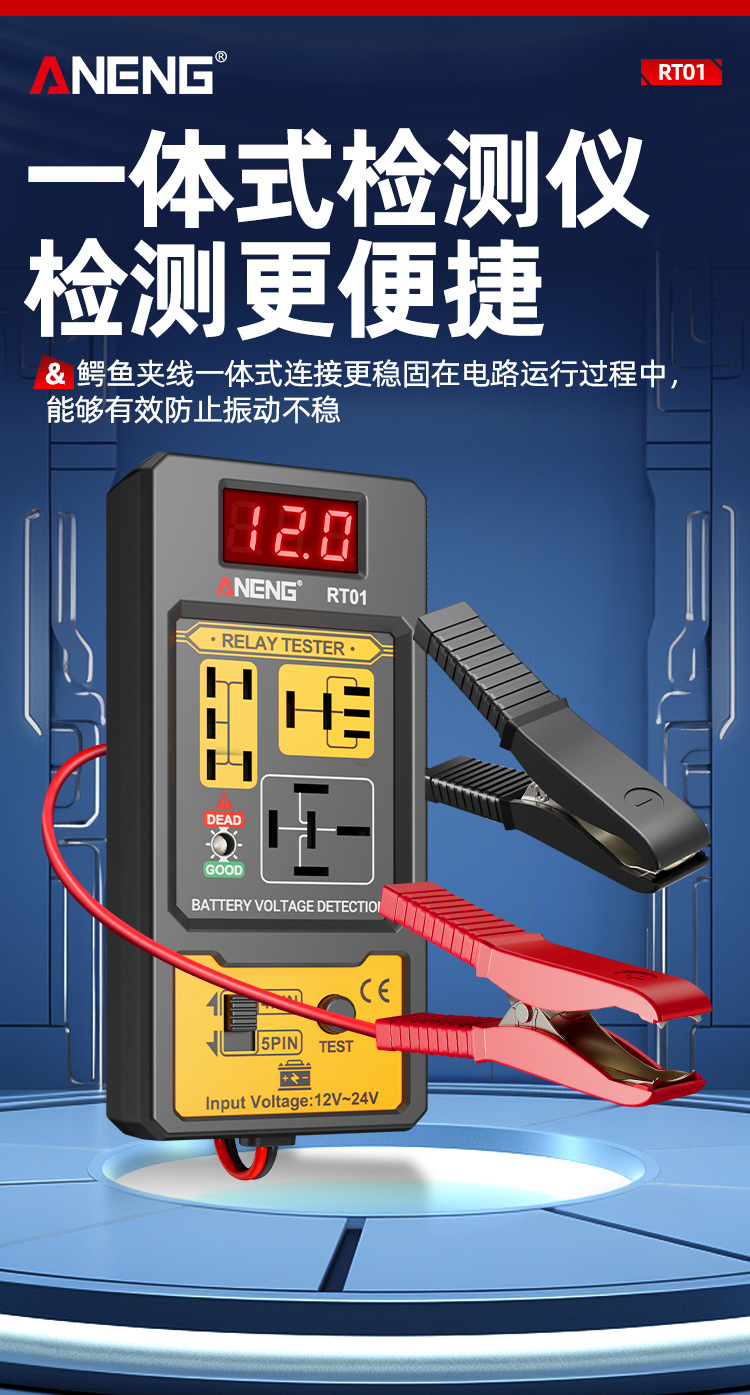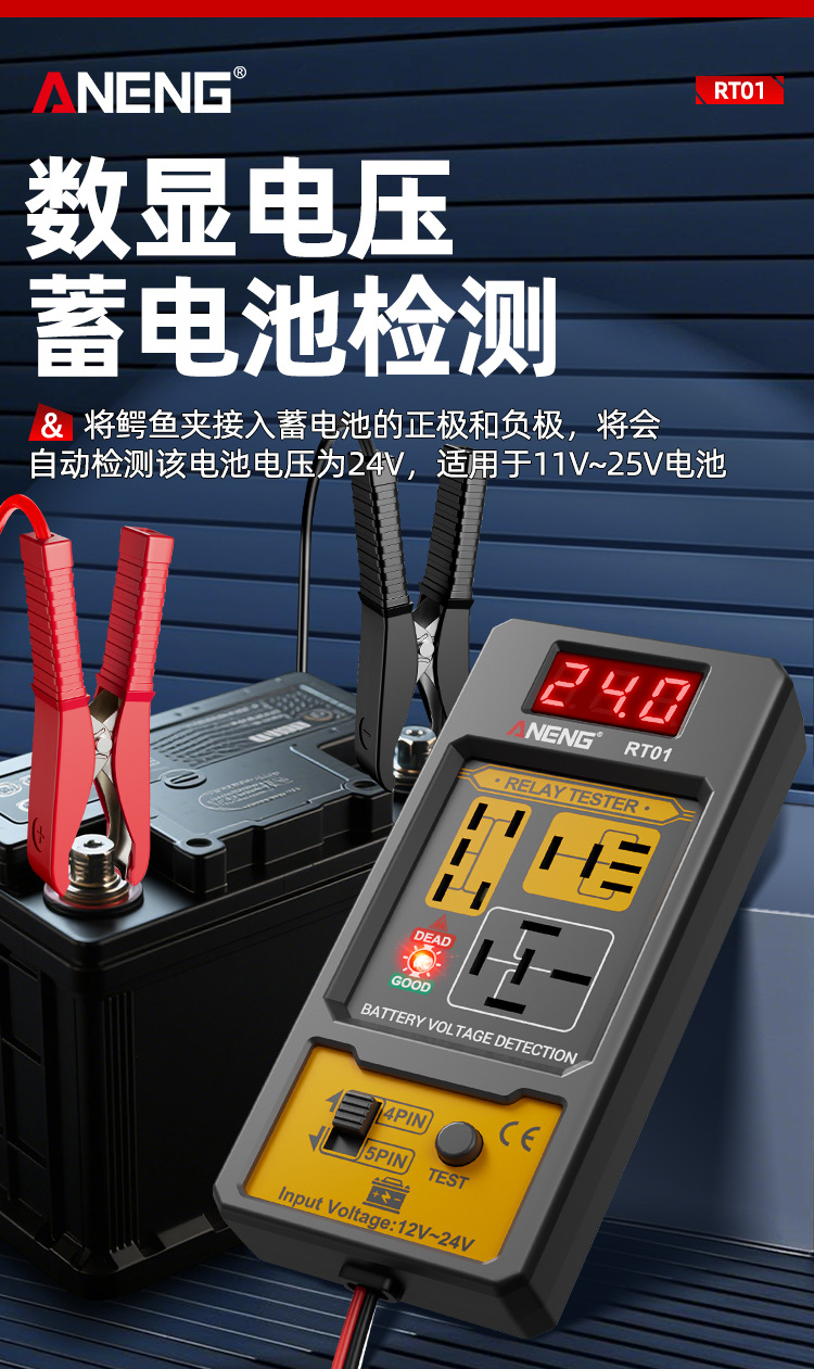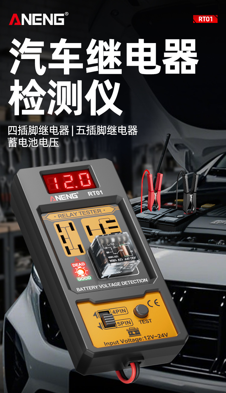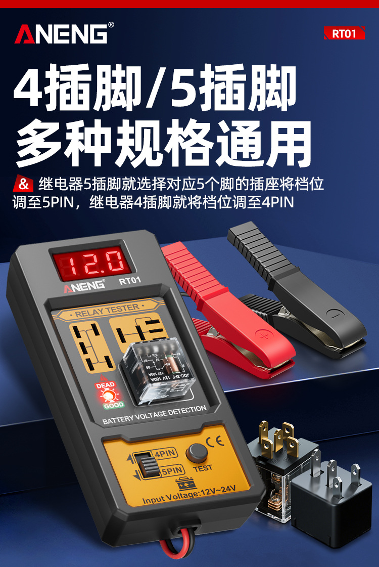 ANENG汽车继电器检测仪12V24V四脚五脚通用蓄电池数显测试分析仪