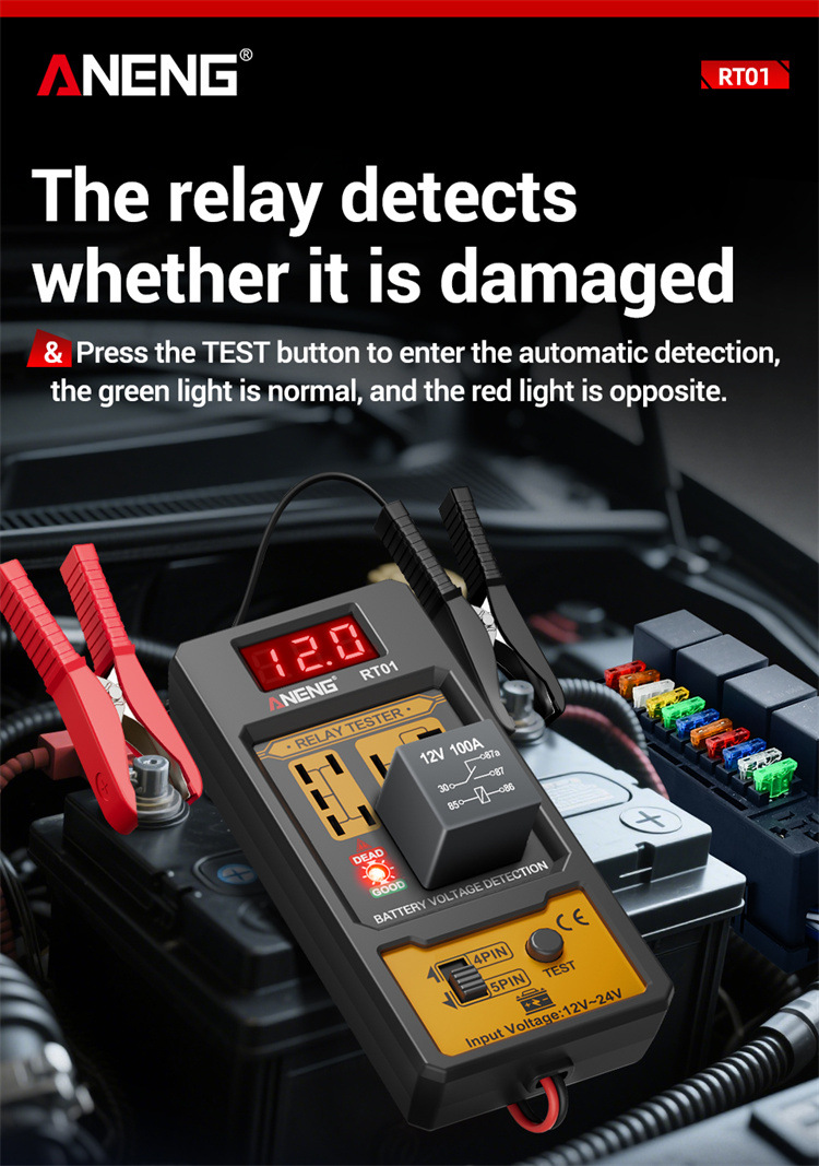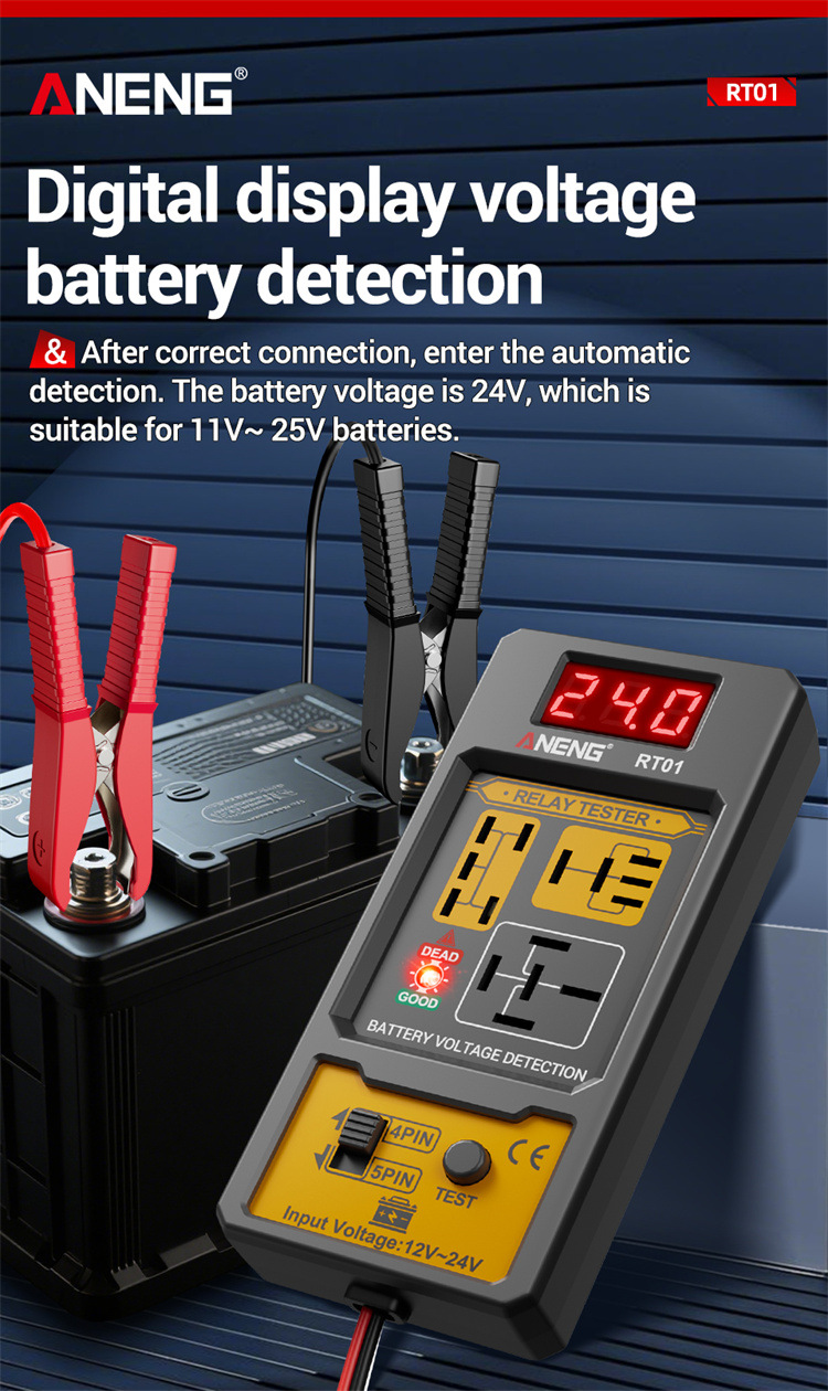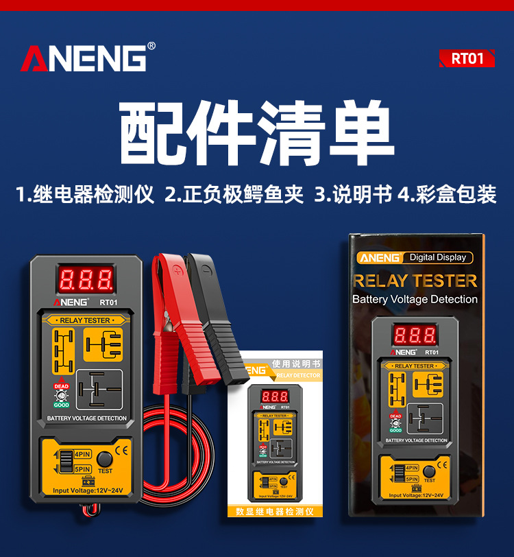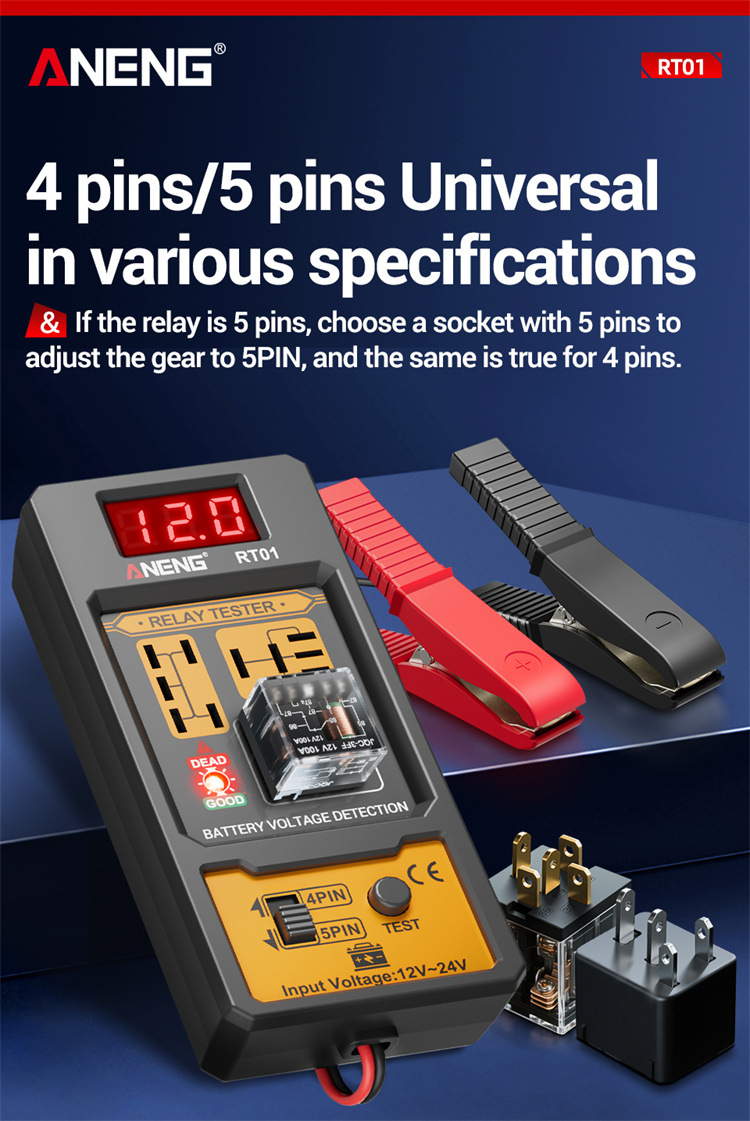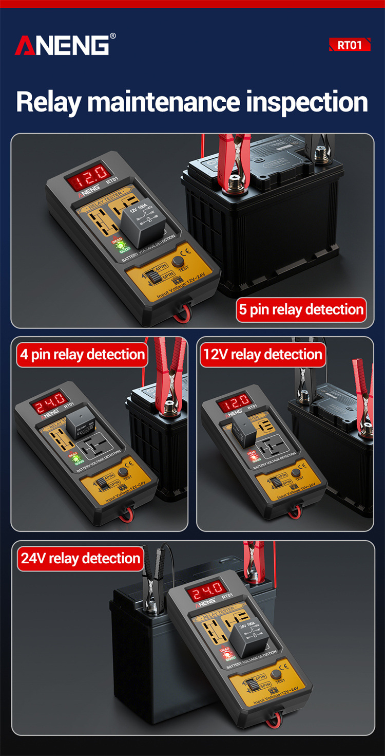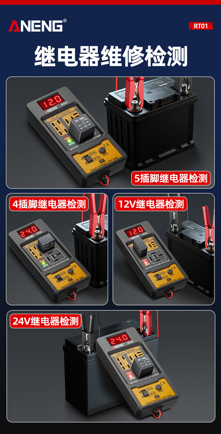 ANENG汽车继电器检测仪12V24V四脚五脚通用蓄电池数显测试分析仪