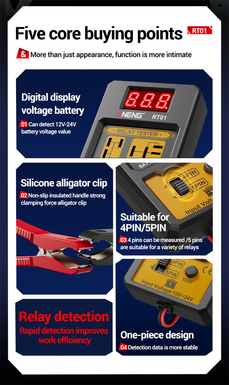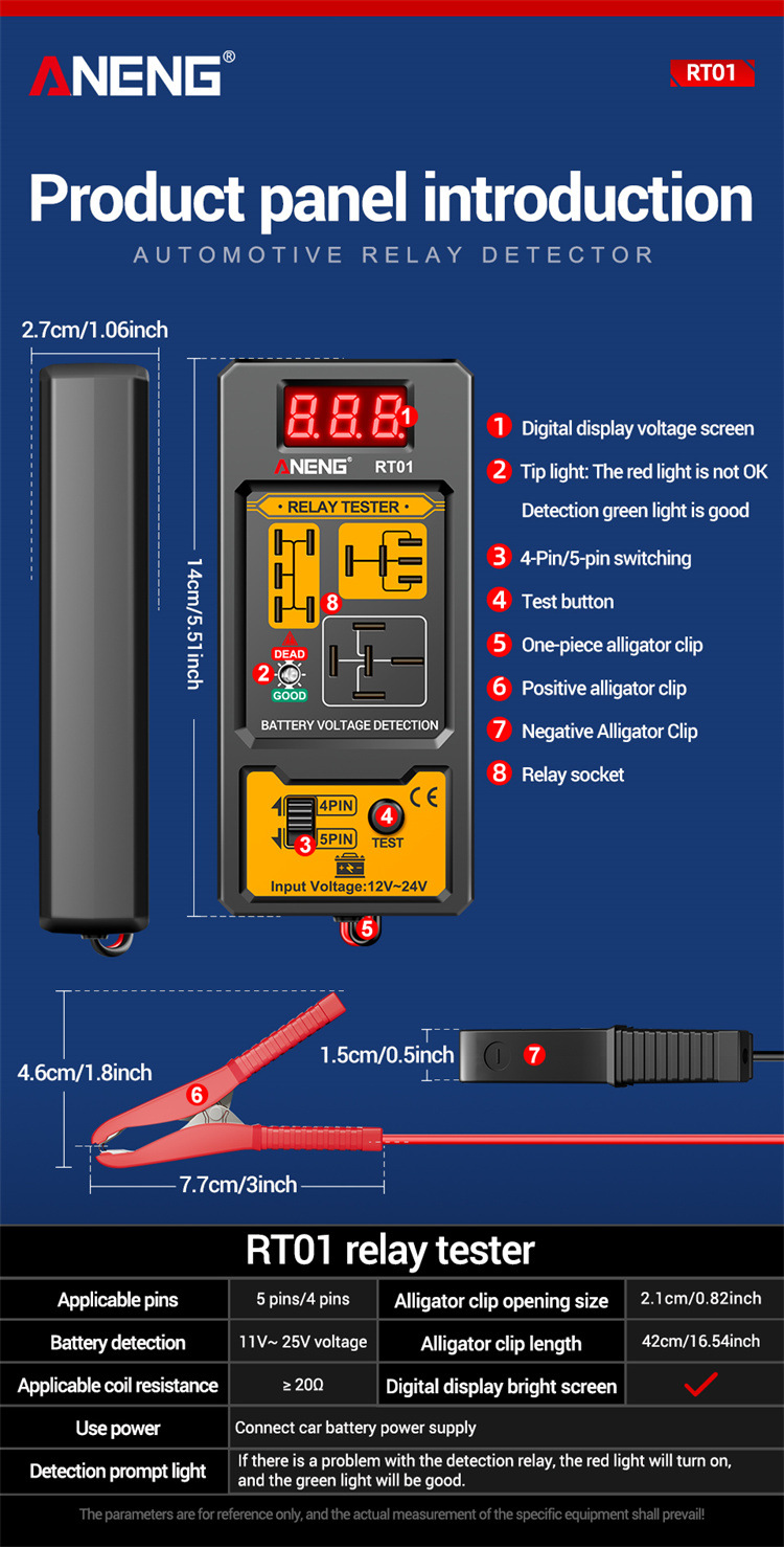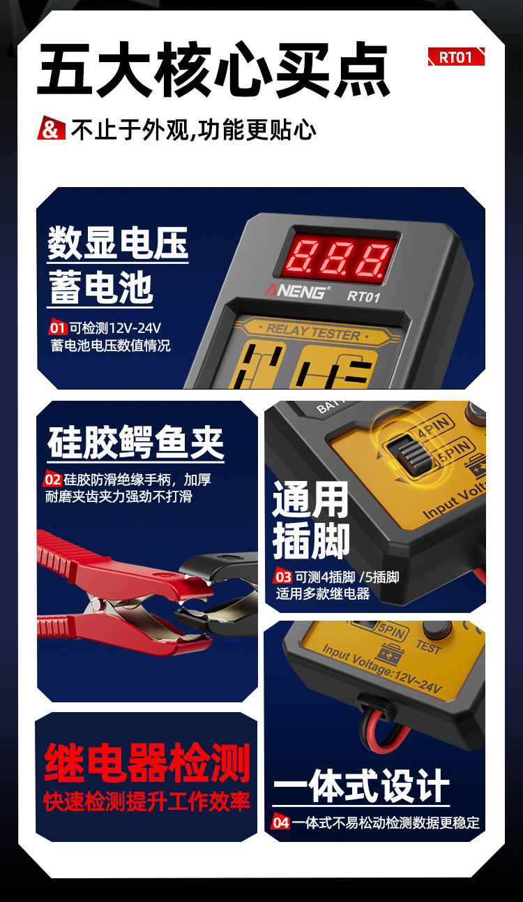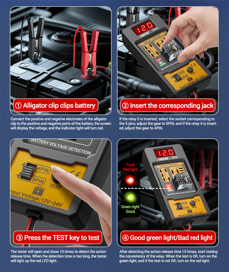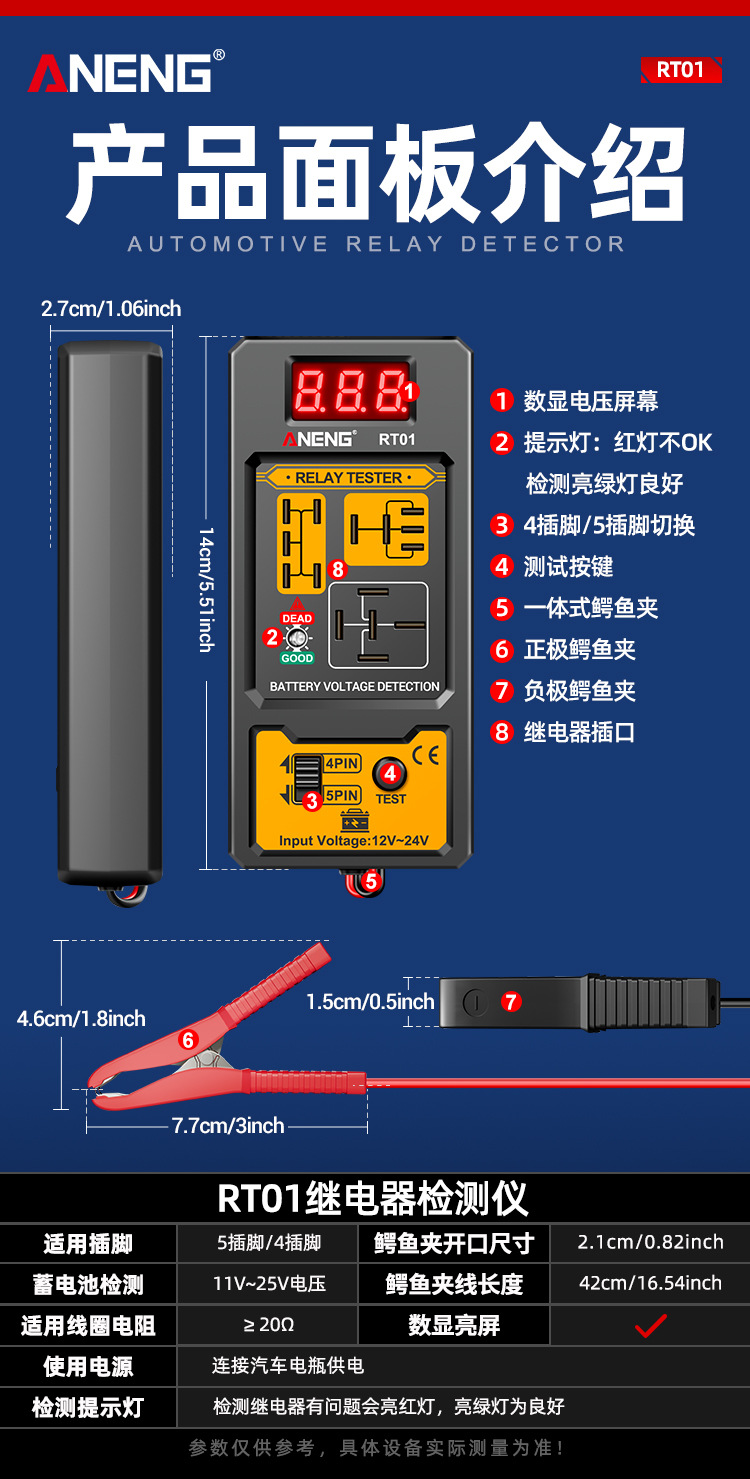 ANENG汽车继电器检测仪12V24V四脚五脚通用蓄电池数显测试分析仪