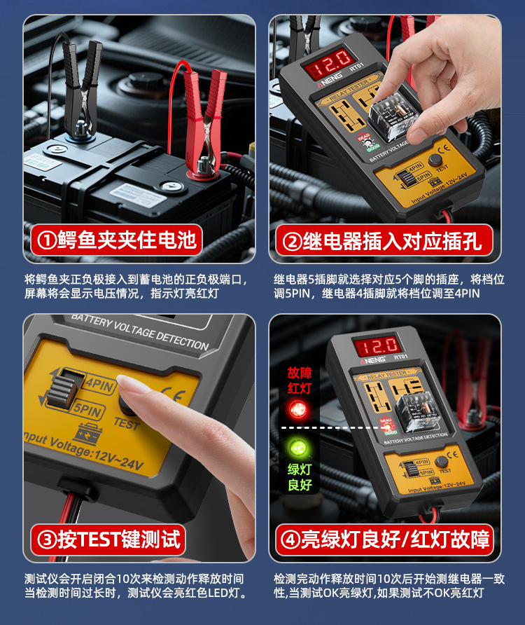 汽车继电器检测仪蓄电池数显测试仪继电分析仪12V24V四脚五脚通用
