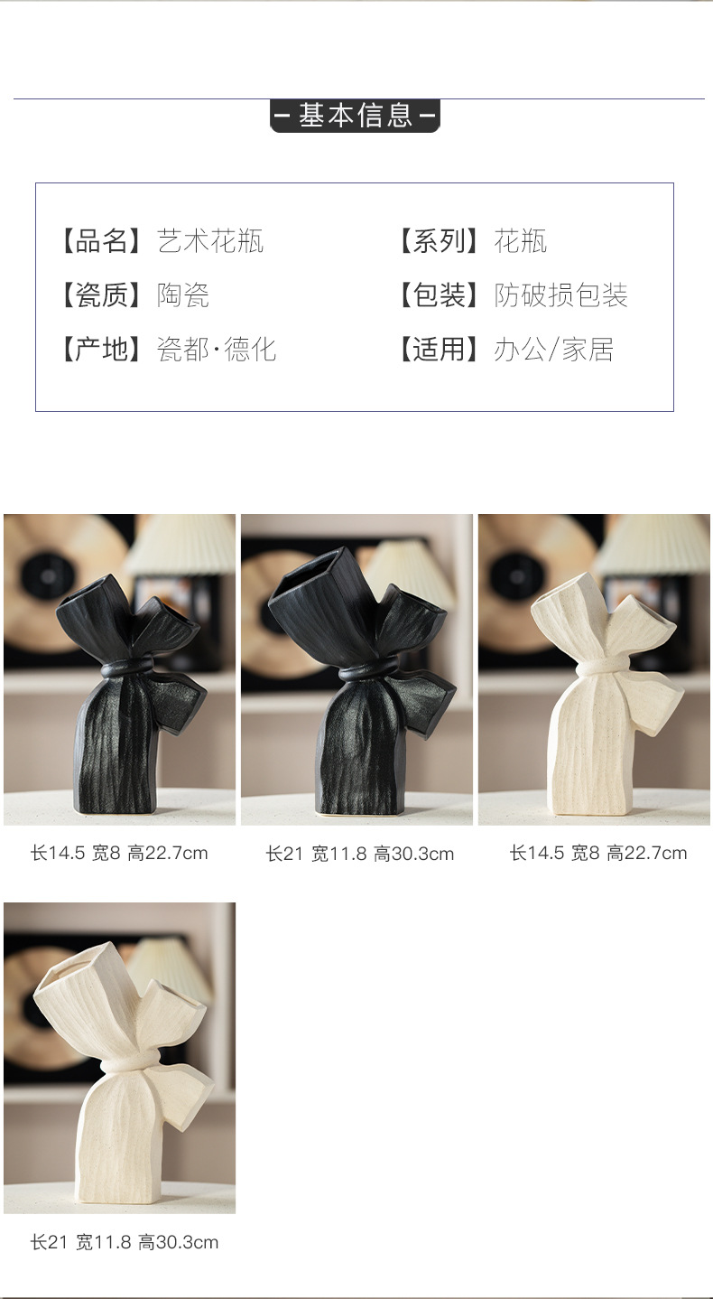 跨境直供陶瓷艺术摆件花瓶客厅电视柜插干花创意轻奢装饰高级感花