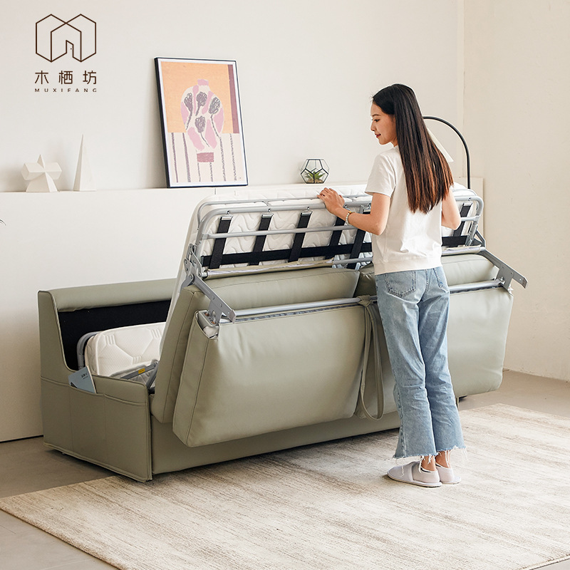 木栖坊真皮翻转沙发床带床垫式一体两用小户型客厅2025新款可折叠