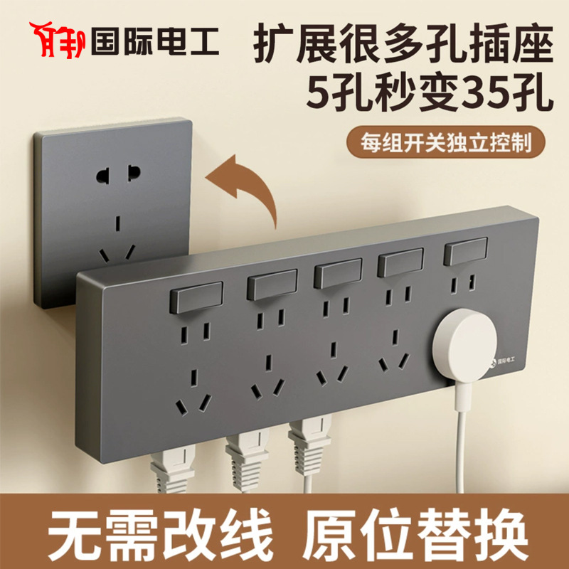国際電気規格86型一体型コンセント35穴キッチン拡張多口コンセント変換アダプター配電盤ワイヤレス電源タップ