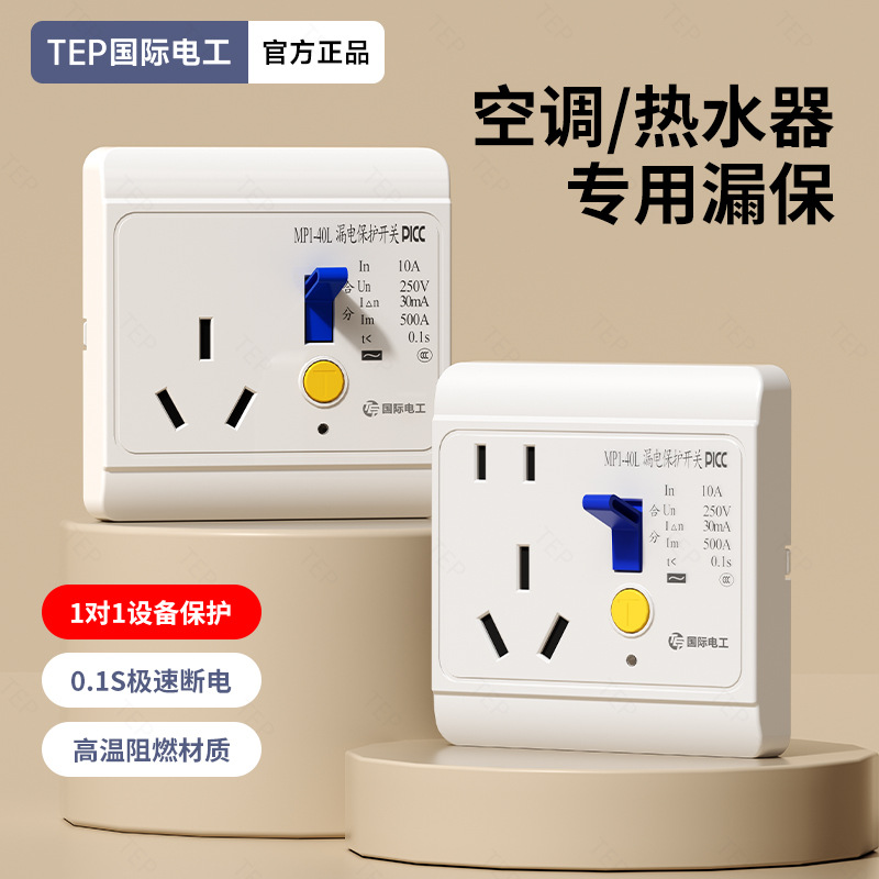空调漏电保护插座16A电热水器漏保插座10A家用漏电保护开关32/40A
