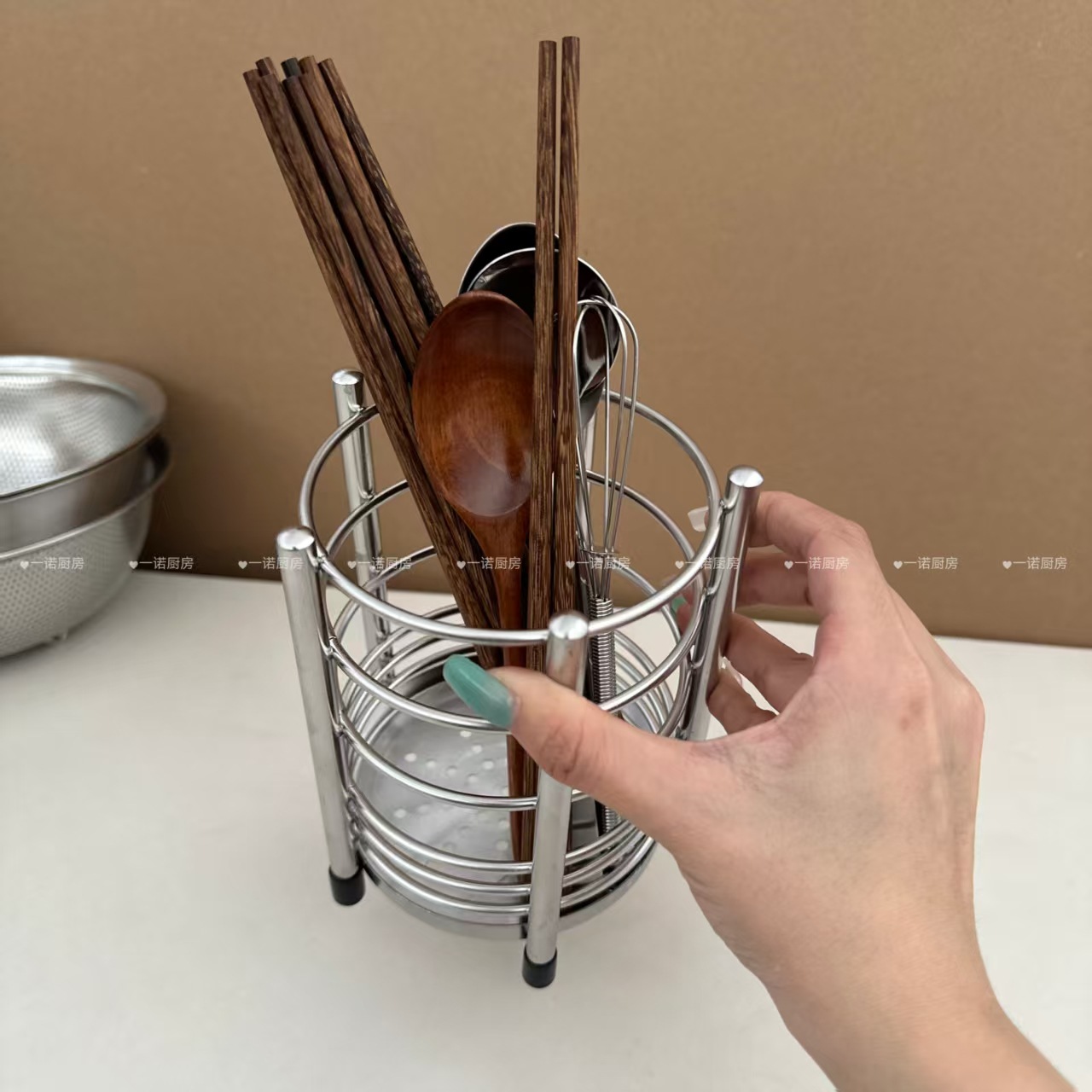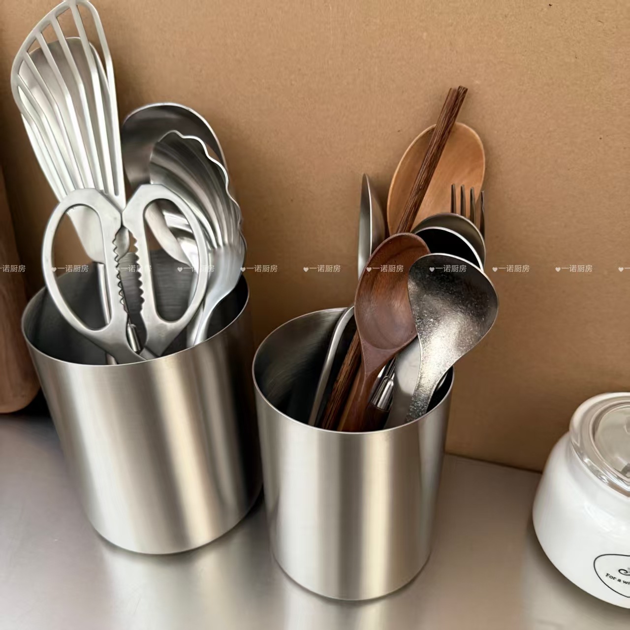 一诺厨房304钢餐具收纳筒厨房收纳罐筷筒筷笼叉勺架化妆刷储物筒