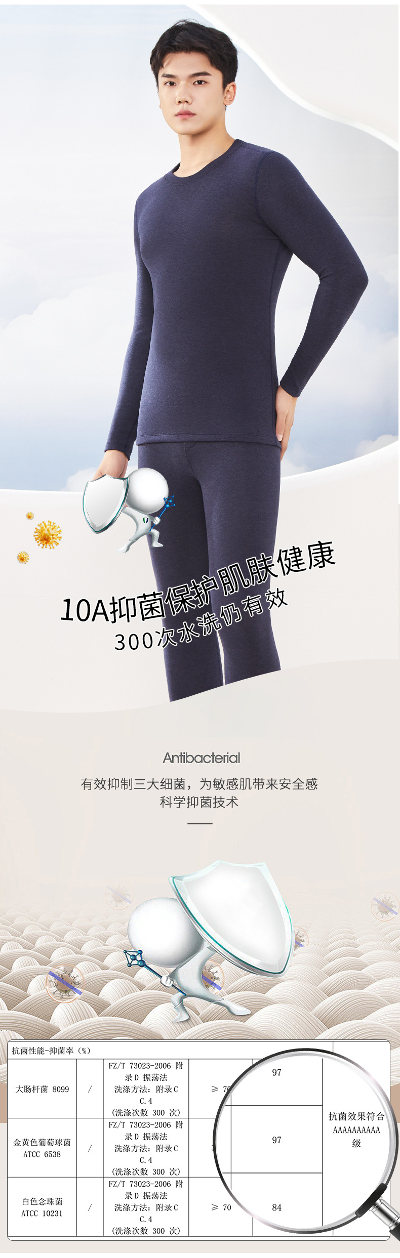 [10A抑菌]无痕德绒保暖内衣套装男女A类羊绒蚕丝混纺加厚秋衣秋裤