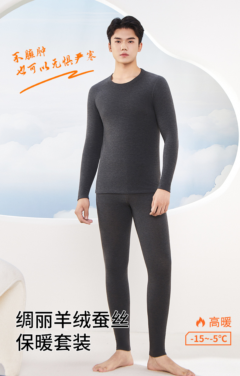 绸丽保暖内衣套装男加绒加厚发热秋衣秋裤羊绒蚕丝抗菌打底内衣男