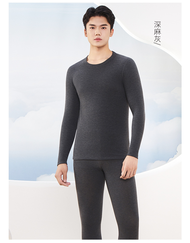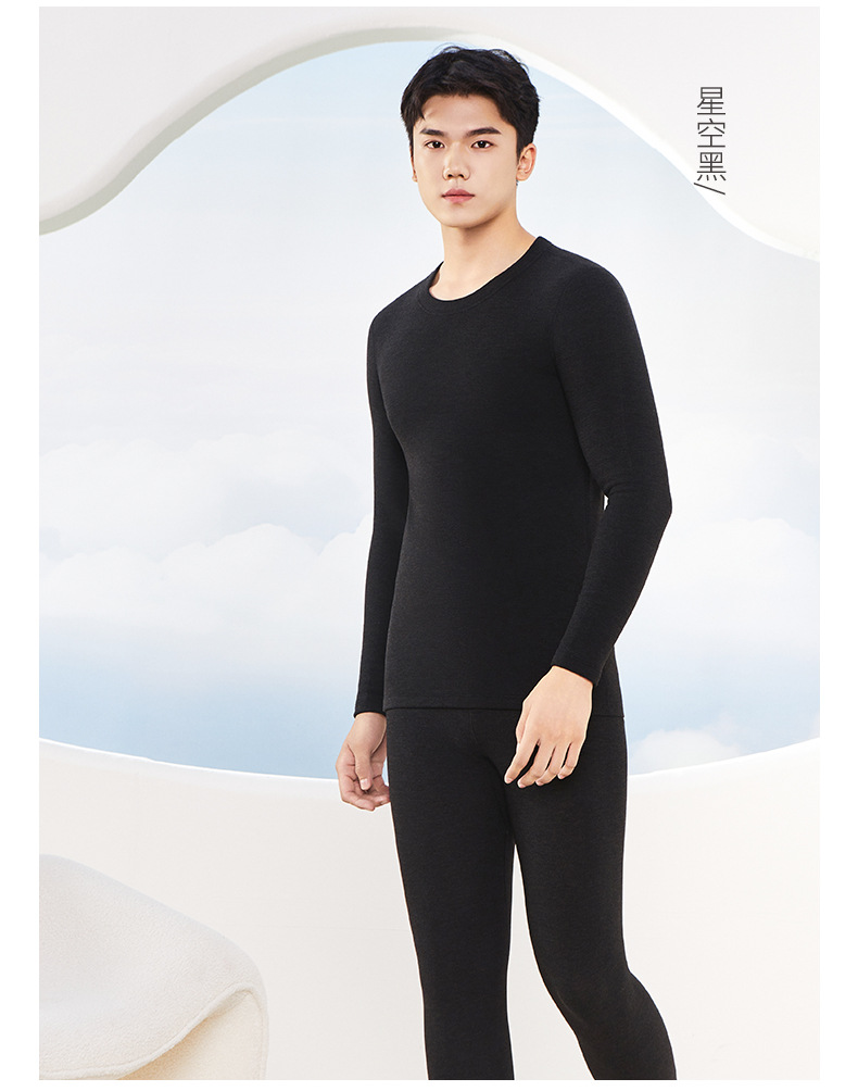 保暖内衣套装男加绒加厚抗菌秋衣秋裤绸丽羊绒蚕丝圆领包边保暖衣