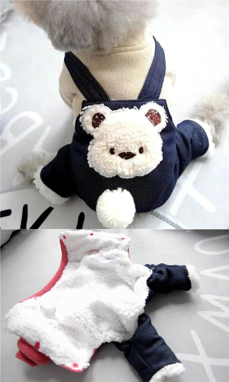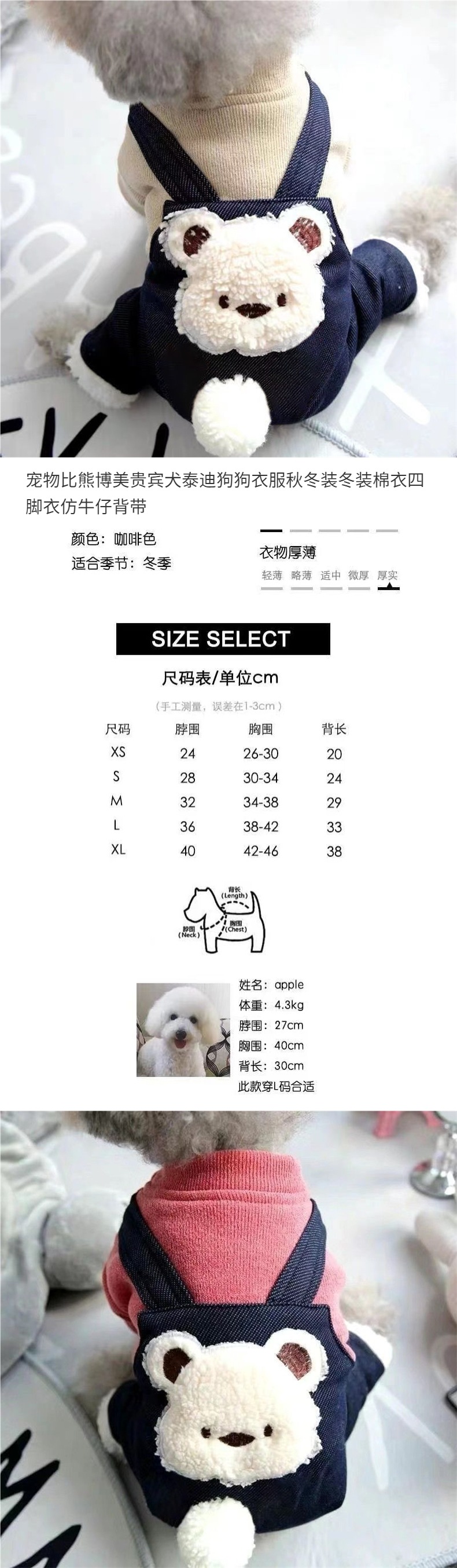 宠物比熊博美贵宾犬泰迪狗狗衣服秋冬装冬装棉衣四脚衣仿牛仔背带