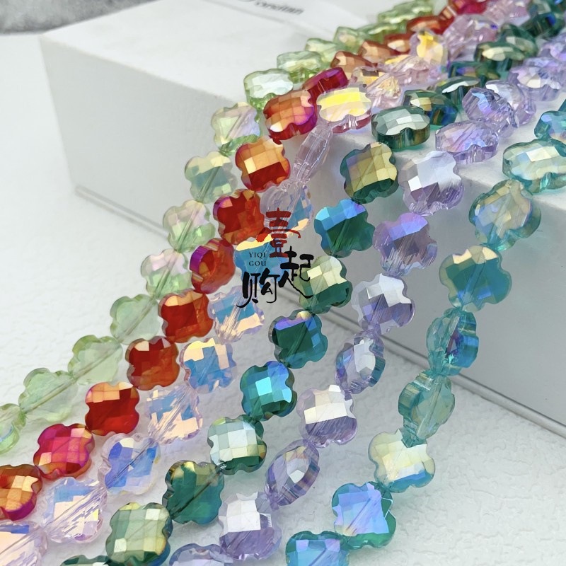 卸売り8mm-12mm水晶四葉草ビーズ散珠幸運草ガラスビーズdiyアクセサリーブレスレット部品