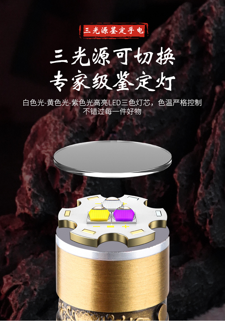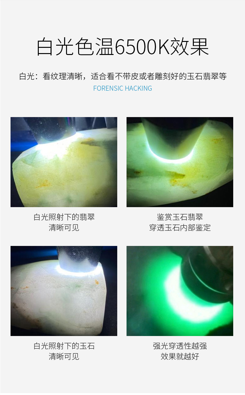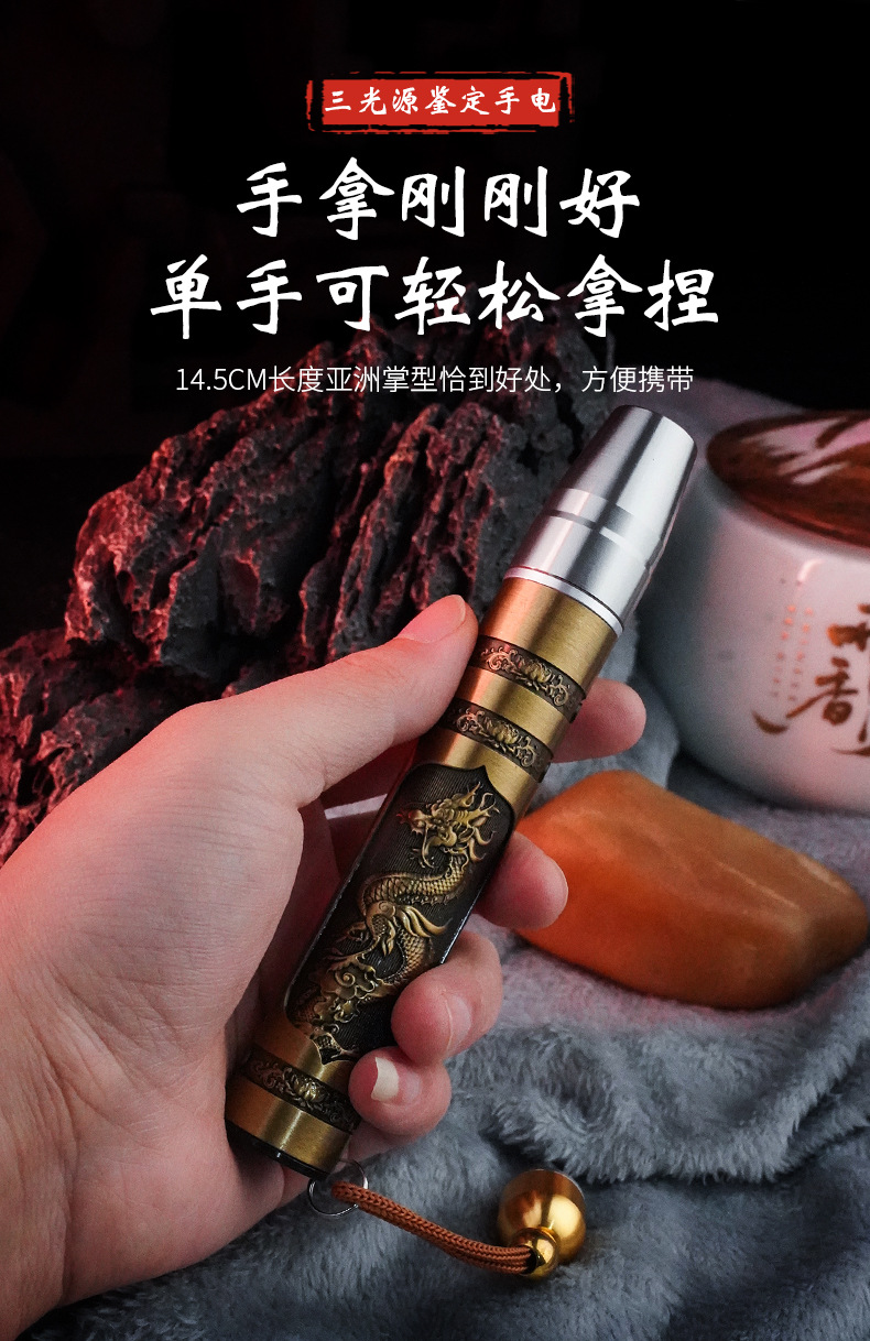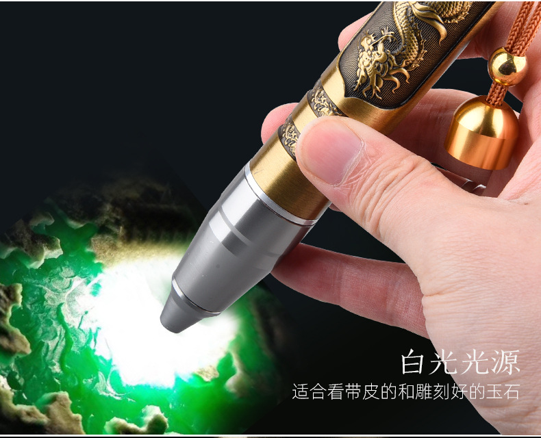 照玉石鉴定手电筒专用强光灯珠宝鉴别看翡翠验钞烟酒365nm紫光灯