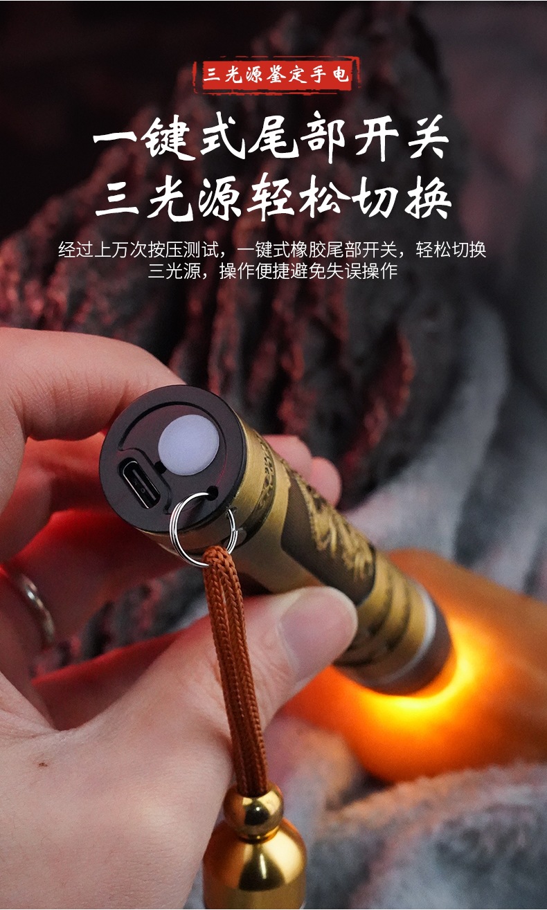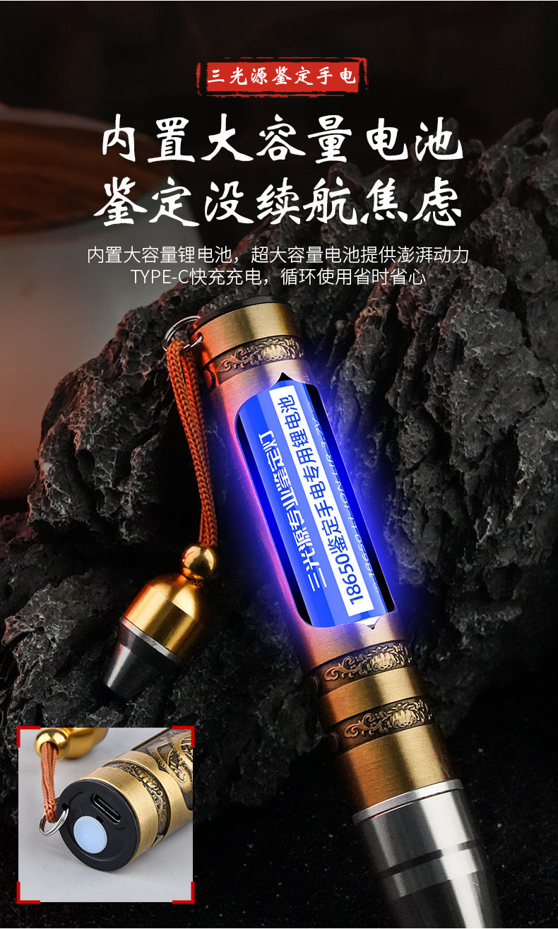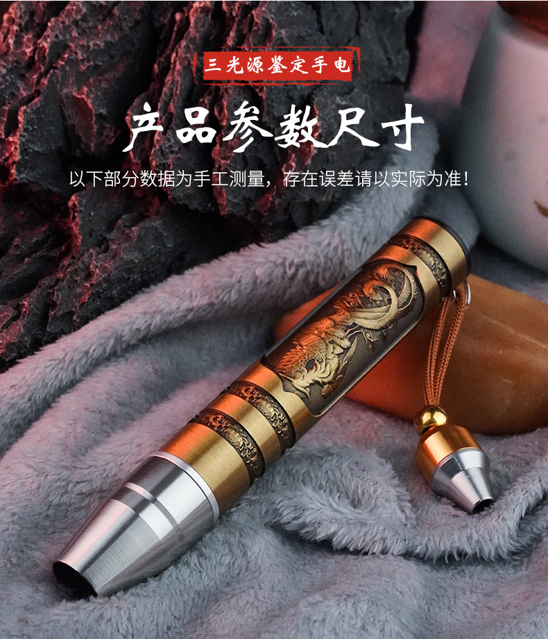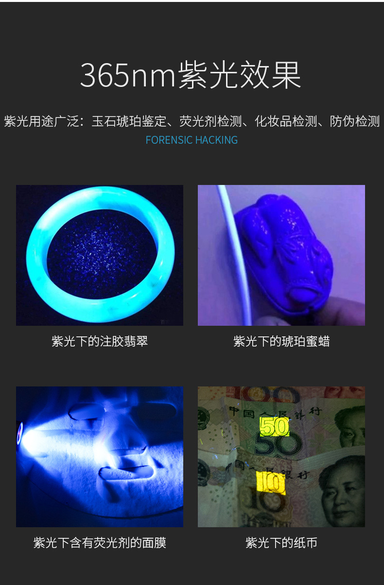 照玉石鉴定手电筒专用强光灯珠宝鉴别看翡翠验钞烟酒365nm紫光灯