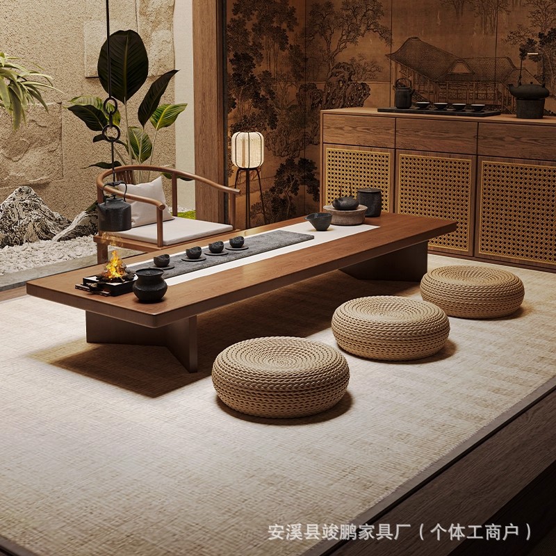 榻榻米实木茶桌椅组合日式禅意茶几功夫泡茶台茶室长条桌阳台矮桌