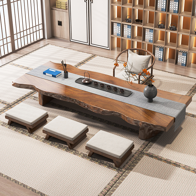 日本式の実木茶のテーブルと椅子の組み合わせは簡単で、長いテーブルとお茶のテーブルの畳の原木のお茶のいくつかの窓の低いテーブルです。