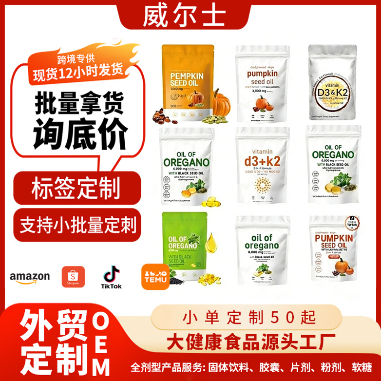 TK热销 牛至油软胶囊Oil of Oregano软胶囊D3K2软胶囊南瓜籽胶囊