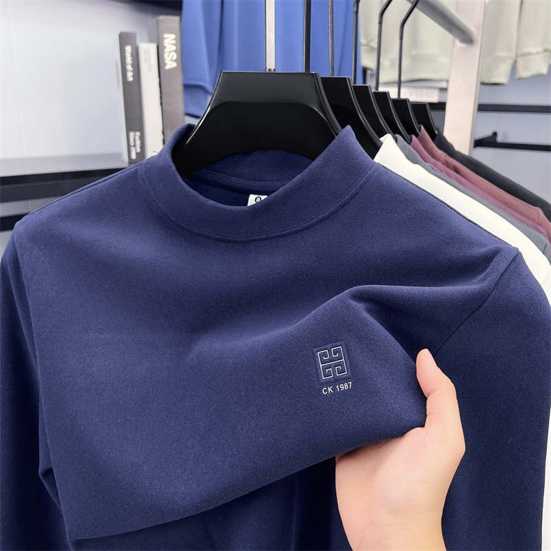 200 グラム両面ドイツベルベットハーフタートルネック長袖 Tシャツメンズ秋冬新スタイルプラスベルベット暖かいミッドカラーボトリングシャツトップ