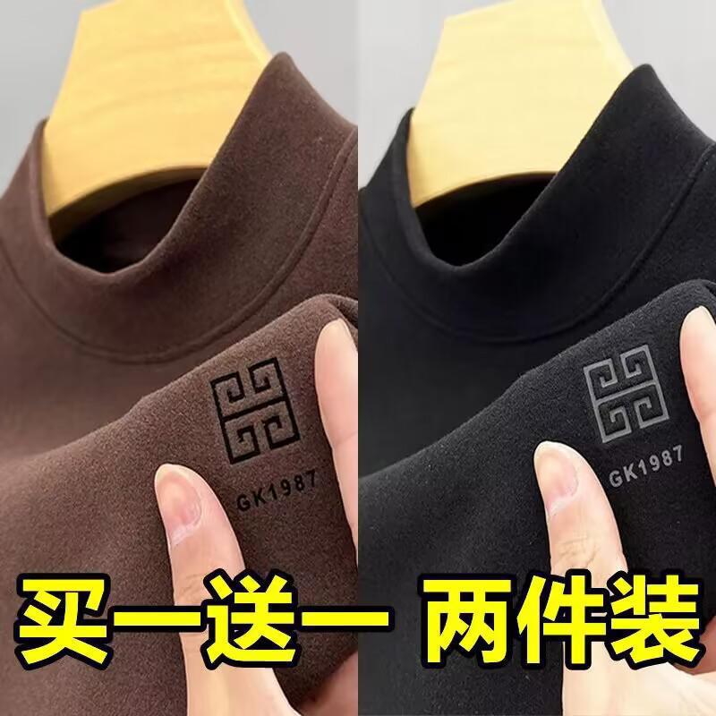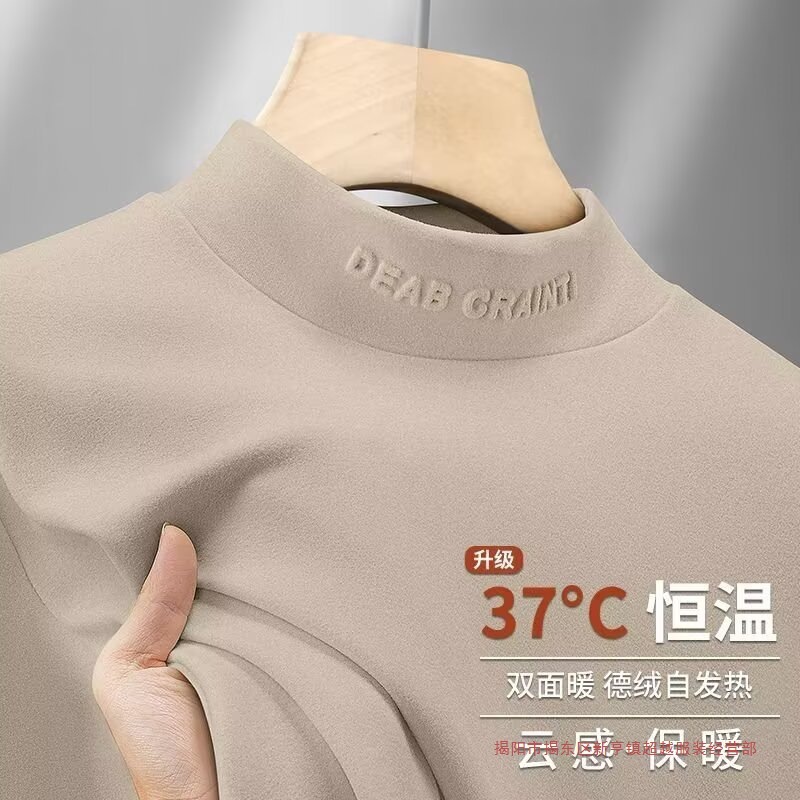 双面德绒半高领打底衫男士秋冬舒适柔软衣服加绒加厚保暖长袖T恤