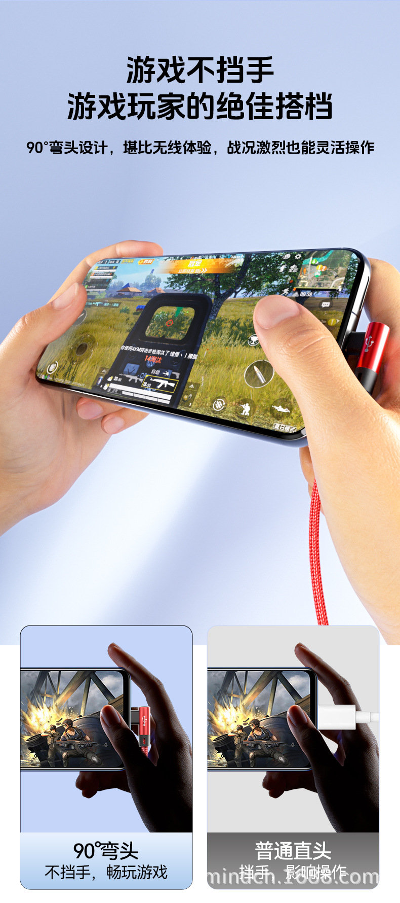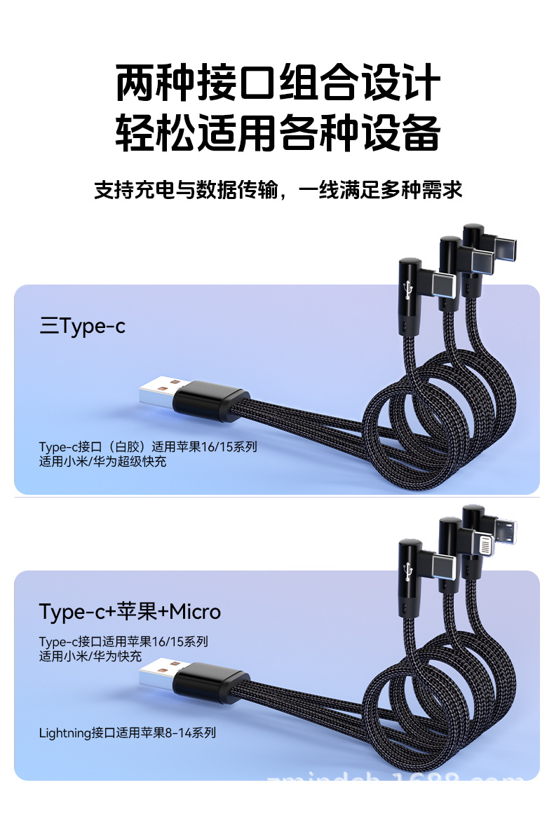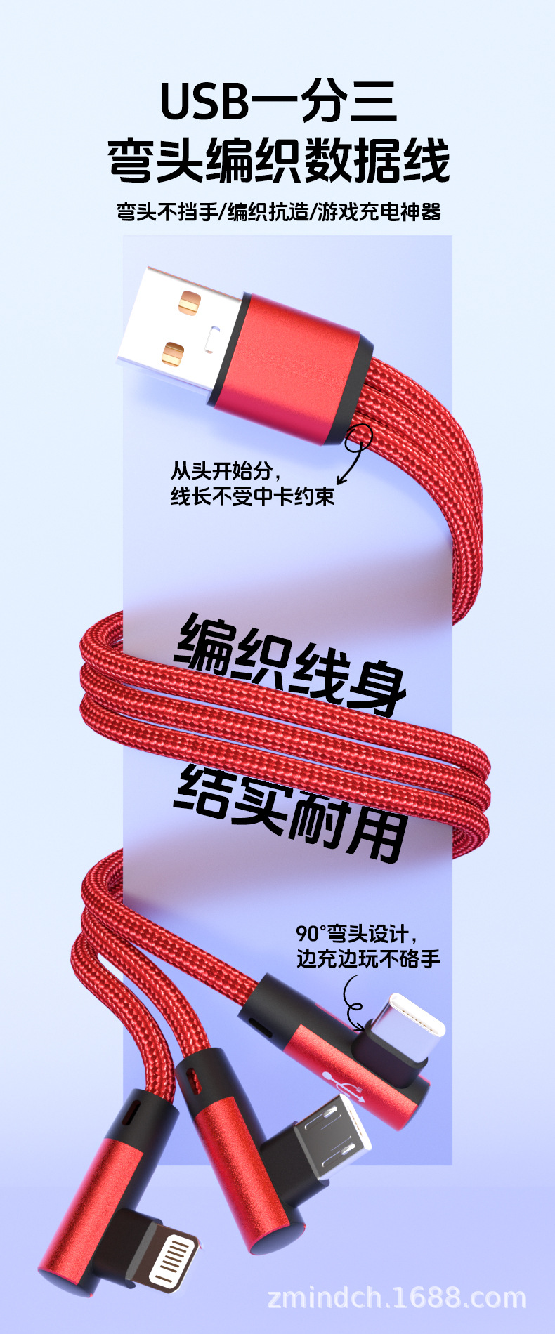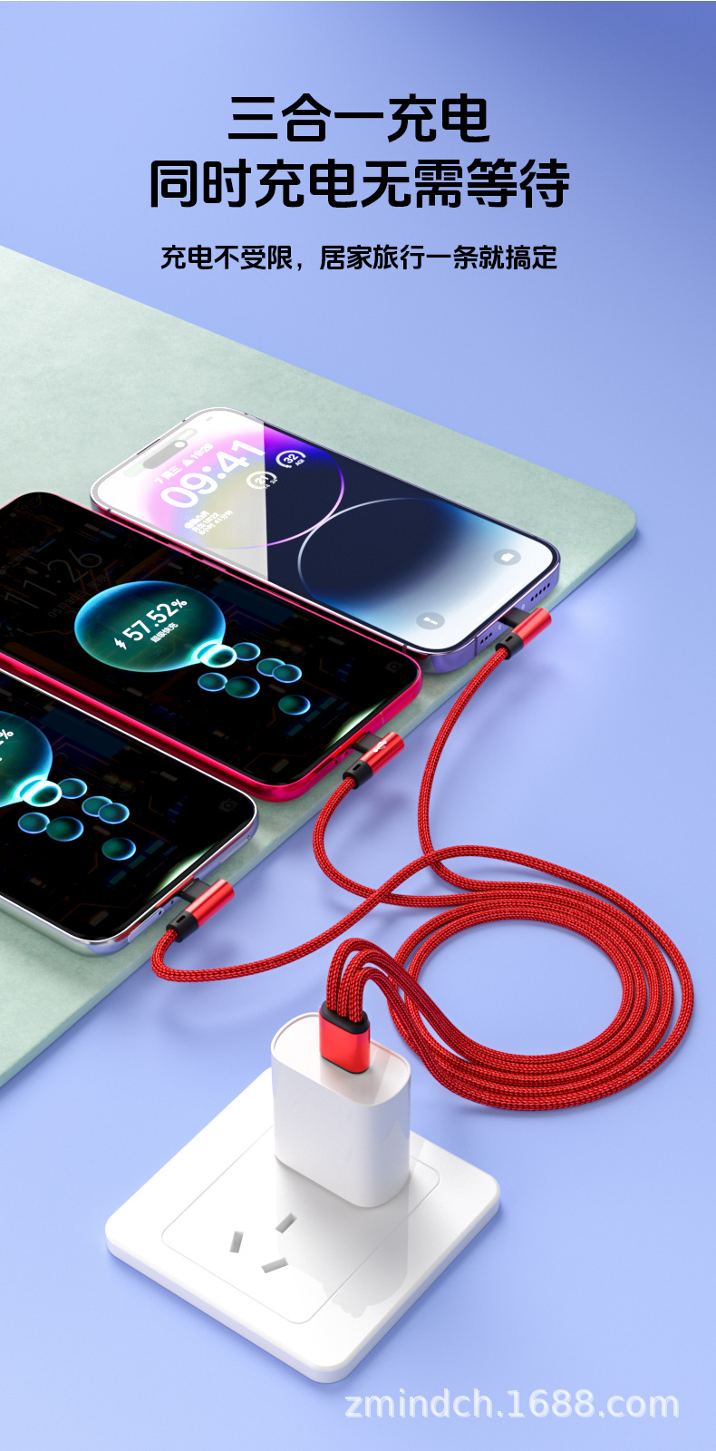 三合一手游弯头数据线适用iPhone17手机华为一拖三尼龙编织充电线