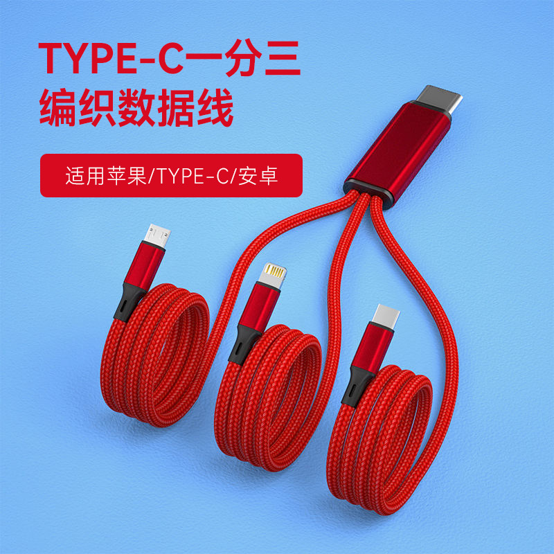 TYPE-C公頭一引き三データケーブル66w超速充一分三編線車載プレゼント充電線