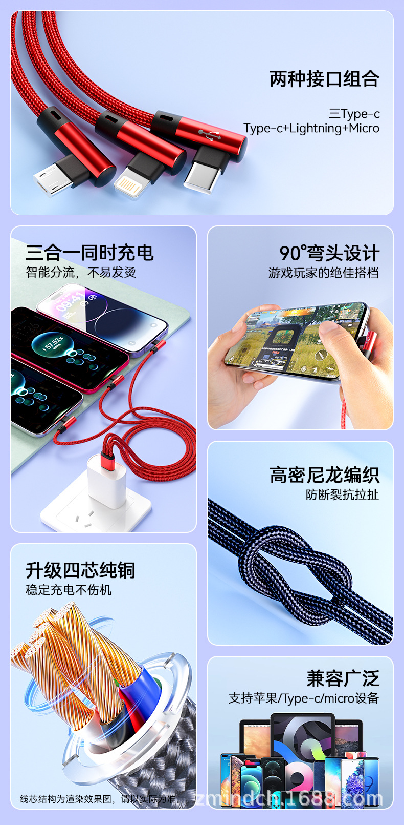 一モップ二データ線二合一混編多頭同期急速充電は安卓リンゴtype-cに適用される